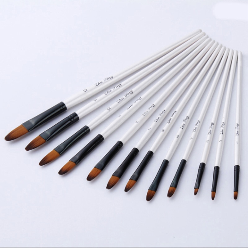 FTVOGUE 12 Teile Los Pinsel Unterschiedliche Größe Nylon Haarölgemälde Pinsel Set Für Aquarell Acryl Zeichnung Kunst Supplie(Flat