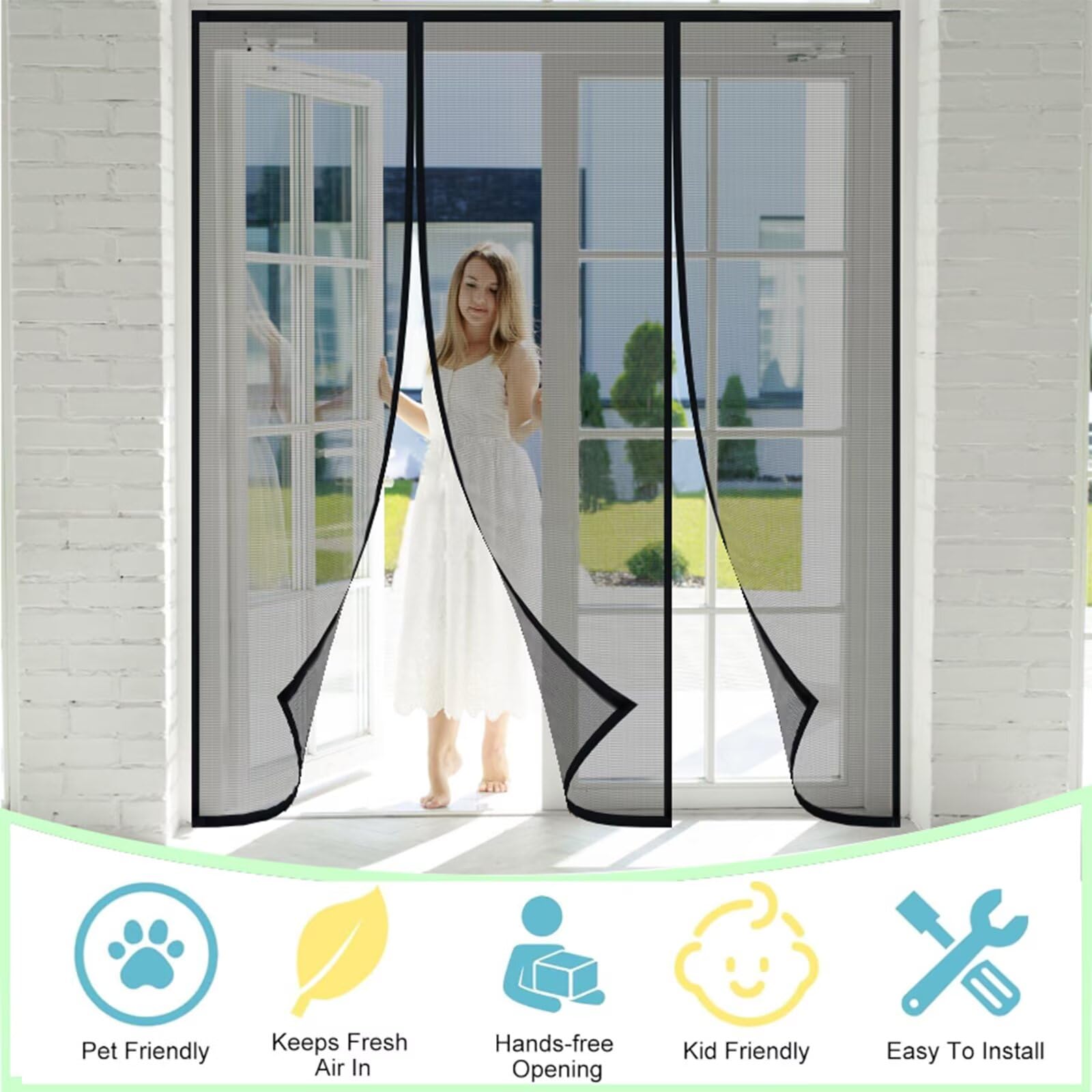 Fliegengitter Tür Magnet 280x180cm Schwarz Magnetvorhang Mit Klettband Luft Kann Frei Strömen Für Balkontür/Terrassentür Ohne Bohren