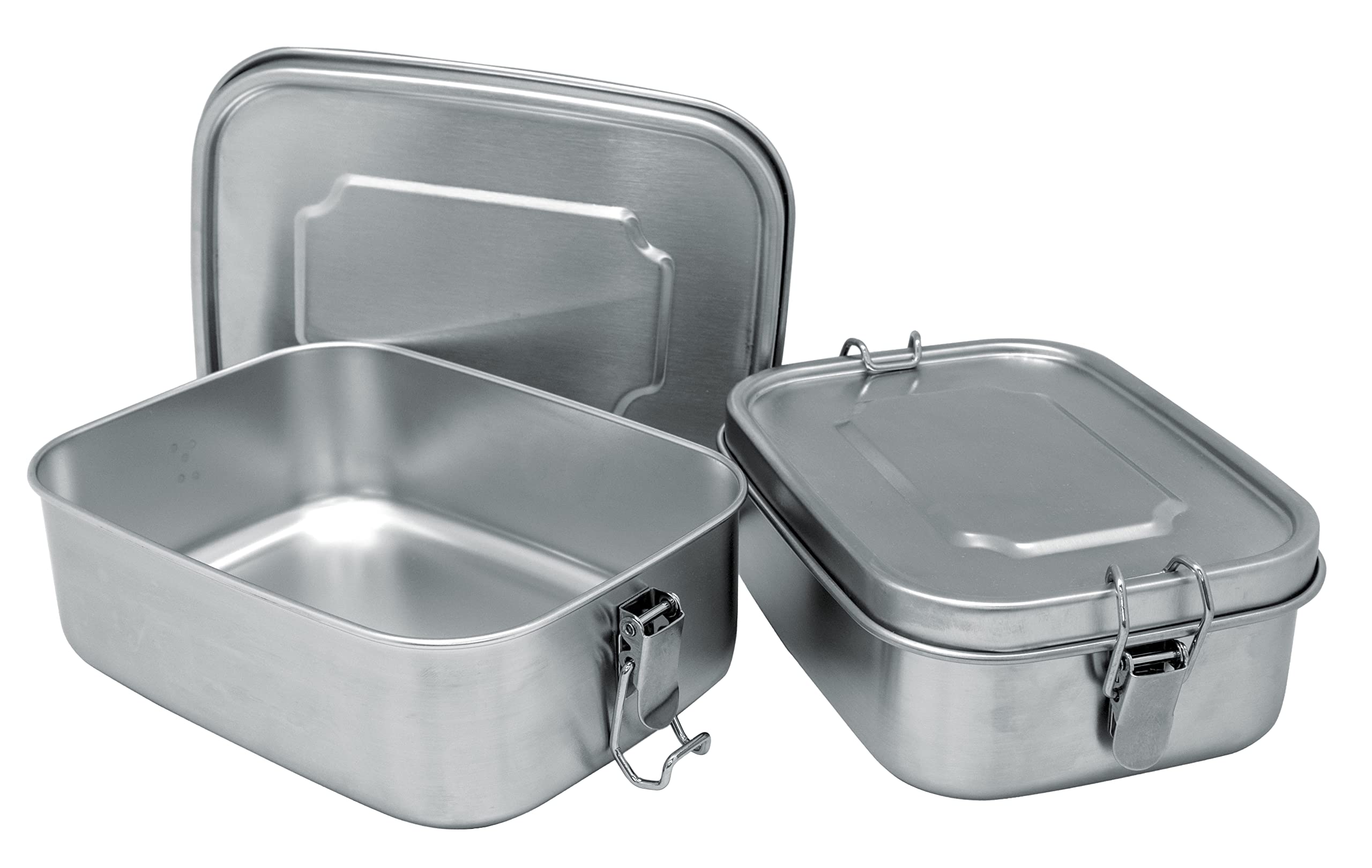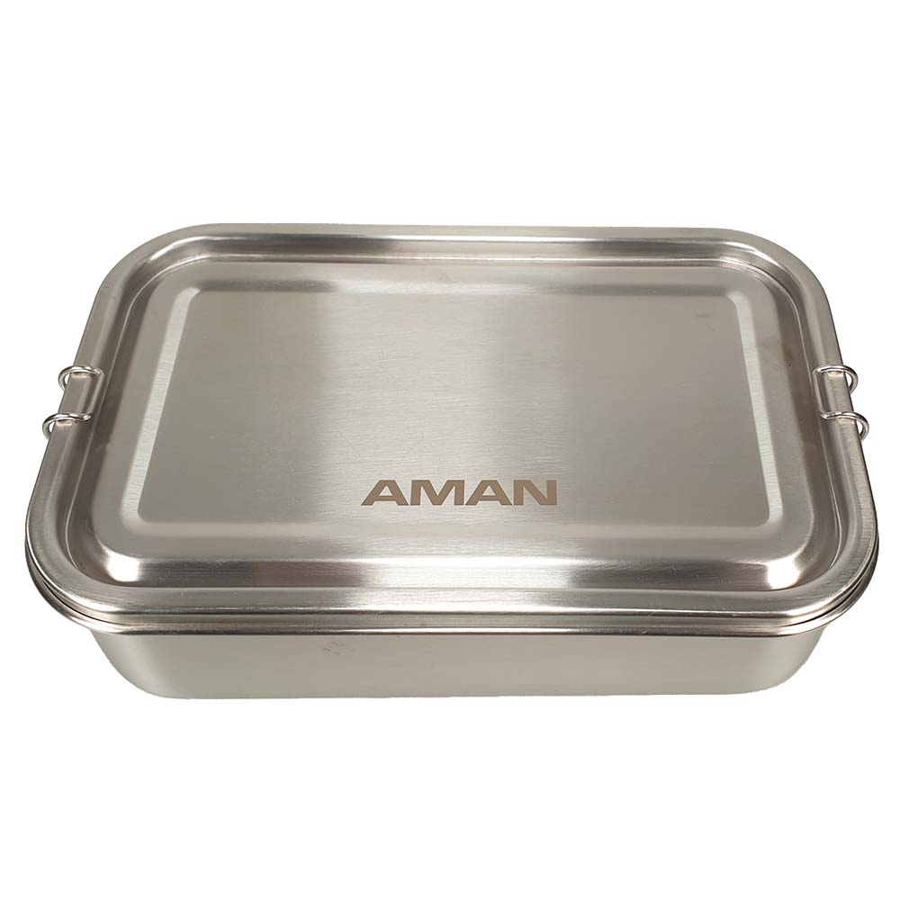 Lunchbox Aus Edelstahl Mit Verschlussklammern Mit Individueller Lasergravur Auf Dem Deckel
