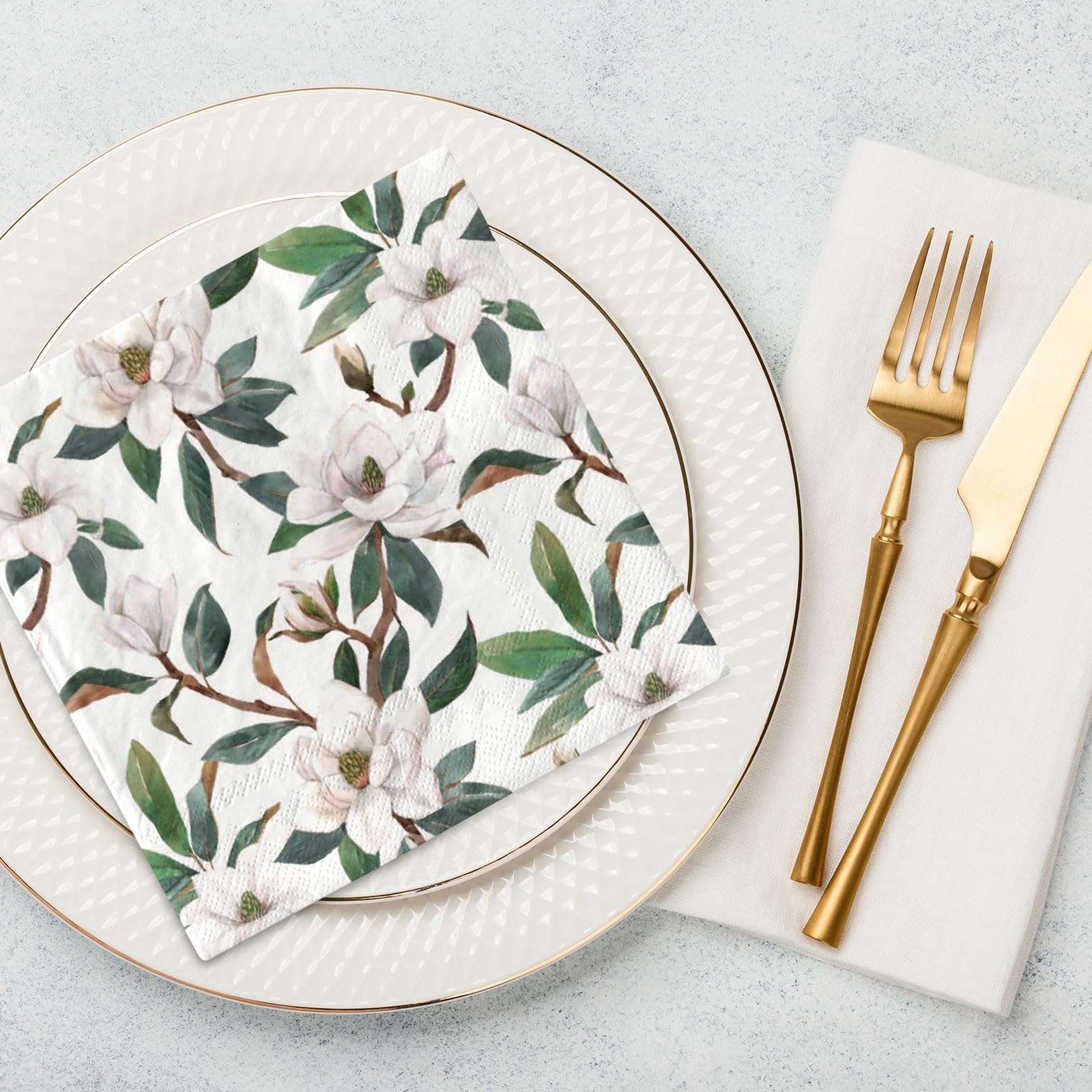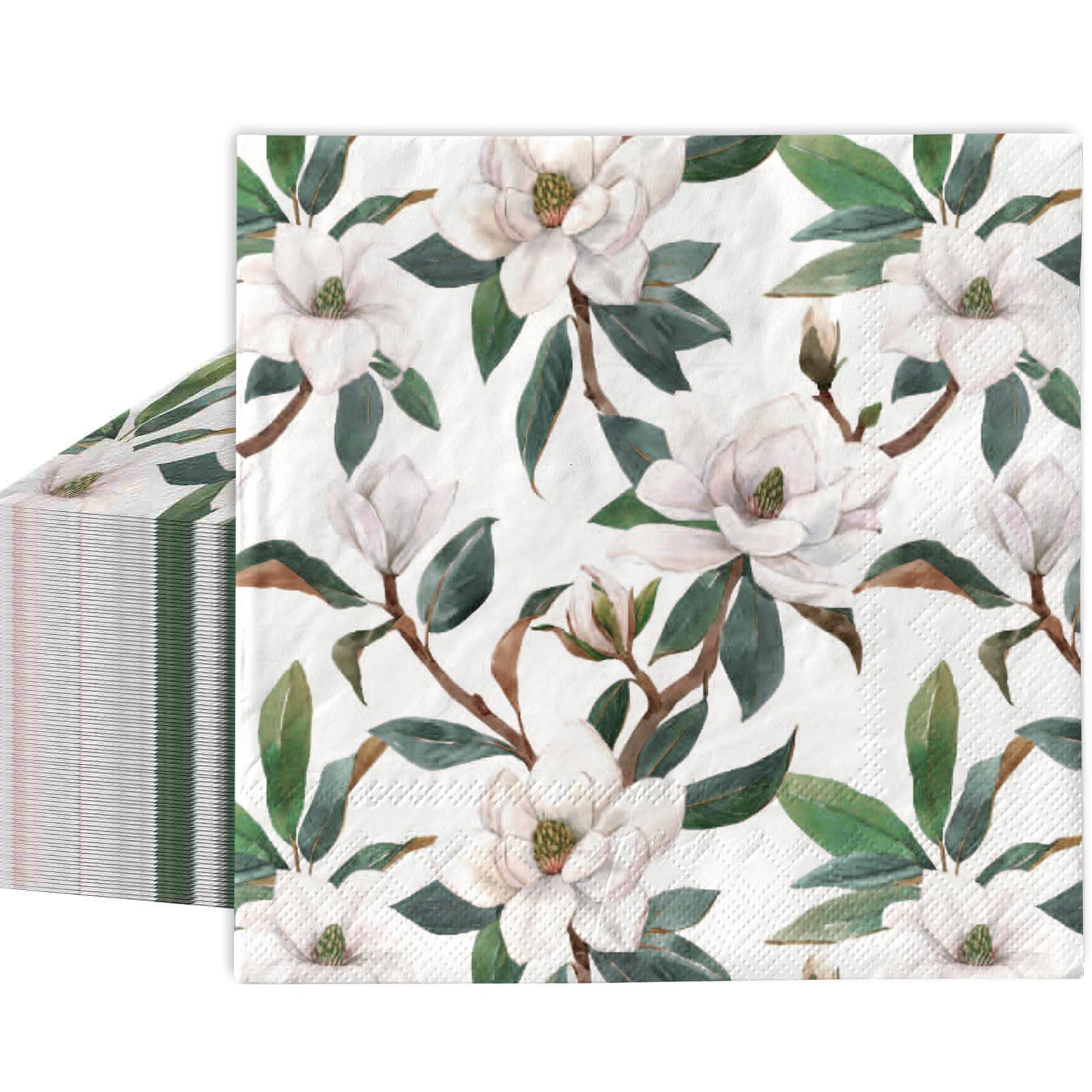 AnyDesign 80 Stück Magnolienblüte Papierservietten Elegant Weiß Floral Luncheon Servietten 6,5 X 6,5 Zoll Einweg Dessert Abendessen Hand Serviette Für Hochzeit Geburtstag Babyparty Brautdusche Zubehör