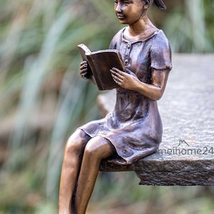 Casa Padrino Luxus Bronzefigur Sitzendes Mädchen Mit Buch Bronze