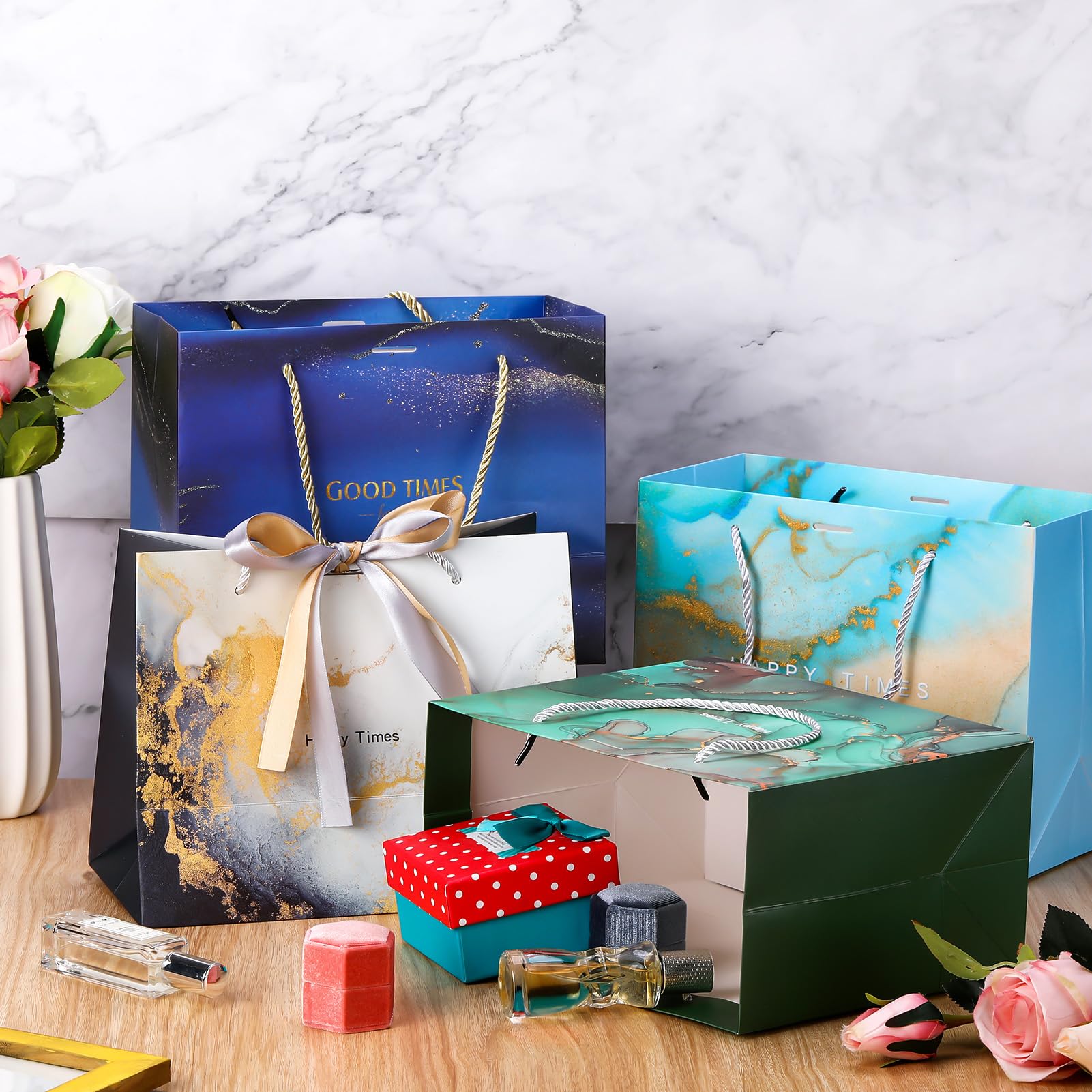 Lyforpyton Große Geschenktüten Mit Seidenpapier, 32 Cm, Blaue Rose, Geschenktüten Für Frauen, Muttertag, Hochzeit, Jubiläen