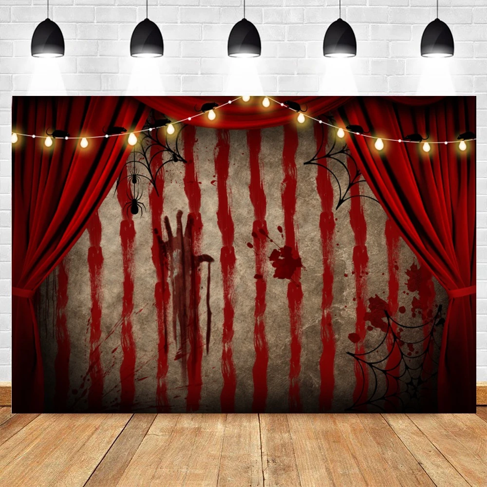 Vinyl 2,4 X 1,8 M Gruseliger Riesiger Clown-Fotohintergrund Rot Weiß Gestreift Karneval Foto Booth Studio Requisiten Zubehör Horror Zirkus Spukhaus Halloween Party Banner Dekorationen