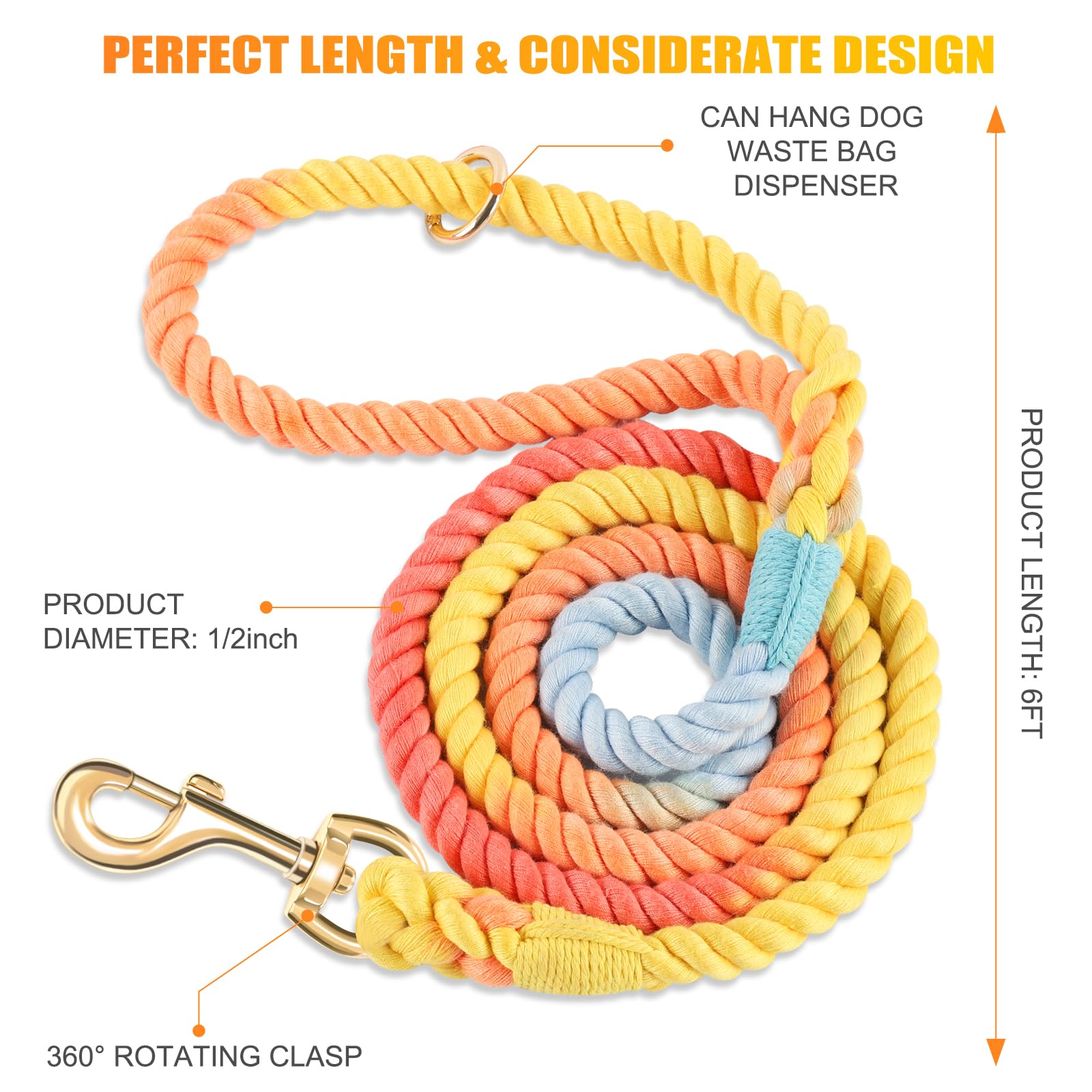 NUGUTIC Hundeleine 1,5 M Handgefertigte Geflochtene Baumwollseil Leine Metallverschluss