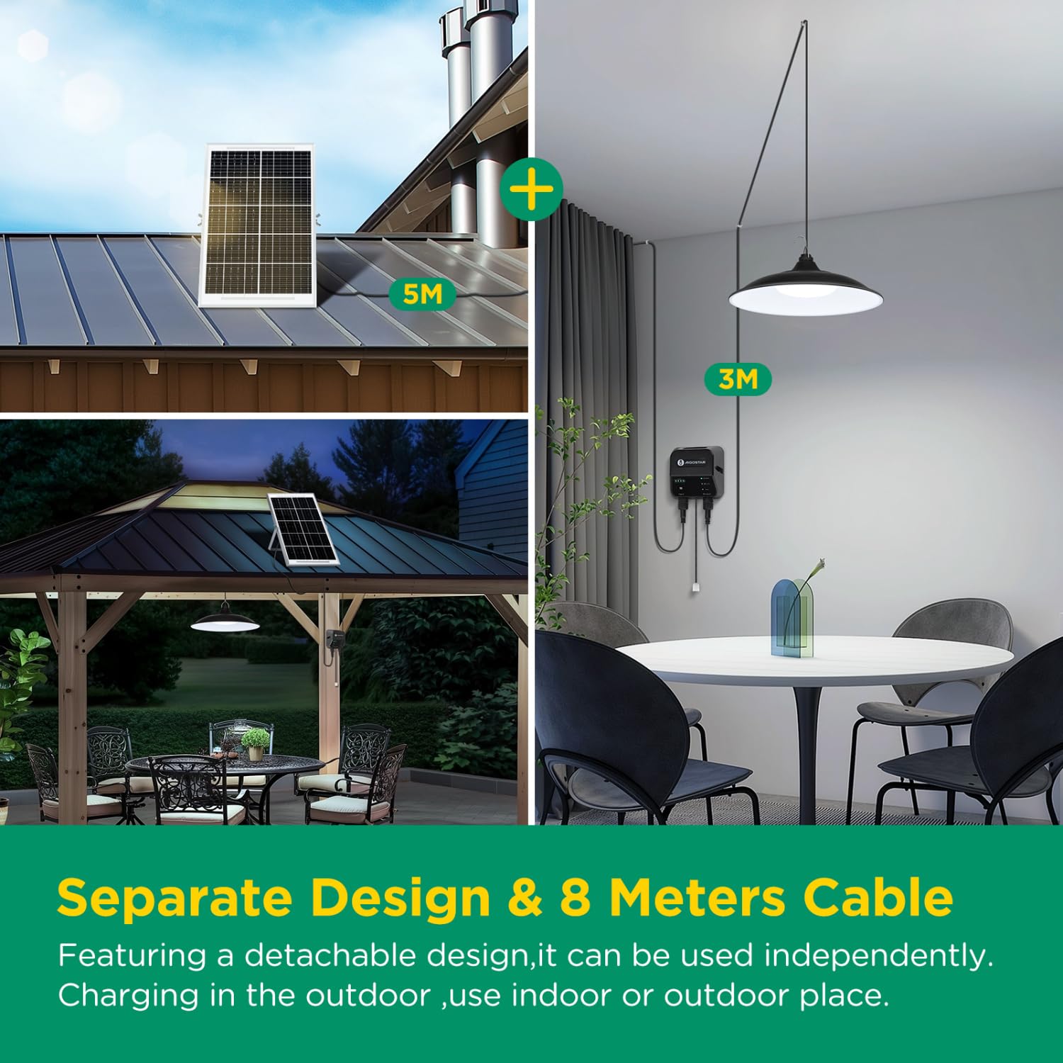 Aigostar Solar-hängeleuchte,solarlampen für außen hängend mit Fernbedienung,dimmbare/zeitgesteuerte Solarlampe,große Batteriekapazität und IP65 wasserdicht, Solar Licht mit 3 M Kabel für Innen/Außen von Aigostar. Sicherheit & Haustechnik günstig online kaufen bei Möbel & Garten 【Helle Beleuchtung und IP65 wasserdicht】Die Aigostar-Solarleuchte verwendet hochwertige LED-Chips, die 700 Lumen Helligkeit (kaltweiß, 6500 K) bieten und gleichmäßiges, helles Licht mit großer Abdeckung erzeugen. Ideal für Notfälle in Innenräumen oder Outdoor-Aktivitäten wie Camping, Picknicks und Lagerfeuer. Helle Beleuchtung und IP65 wasserdicht Die Aigostar-Solarleuchte verwendet hochwertige LED-Chips, die 700 Lumen Helligkeit (kaltweiß, 6500 K) bieten und gleichmäßiges, helles Licht mit großer Abdeckung erzeugen. 【Große Akkukapazität und lange Betriebszeit】Aigostar solar hängeleuchte verwendet größere Solarpanels und eine größere Akkukapazität. Solarlaterne für Außen, Vcuter Solar Laterne Hängend Aussen... 【Abnehmbares Solarpanel für tragbare Stromversorgung】Nach dem Aufladen des Akkus kann das Solarpanel abgenommen werden. Fernbedienung und Zugseil Die Fernbedienung hat eine Reichweite von 8 Metern. Im AUTO-Modus:Tagsüber lädt sie automatisch das Solarpanel auf,nachts schaltet sich die Lampe automatisch ein. solarlampen mit 8 Meter Kabel Die Aigostar-solarlampe hat ein 8 Meter langes Kabel (solarpanel-Kabel 5 m lampenkabel 3 m), das eine flexible Installation ermöglicht und verschiedene Innen- und Außenanwendungen abdeckt. Mit Haken zum Aufhängen in Gärten, Höfen,auf Balkonen,Veranden,Camping, Zelten usw. Aigostar Solar-hängeleuchte,2 Stück,8 m Kabel,Solarlampen für außen hängend mit Fernbedienung und Zugseil,6000 mAh,Große Batteriekapazität,IP65 wasserdicht Solarlampe für Innen/Außen,Garten,Camping Die Hängelampe hat einen Erkennungsbereich von 5-8 M. Aigostar - LED dimmbarer Solarstrahler LED/50W/3,2V IP65 mit Genießen Sie kabellose Freiheit – nutzen Sie das Licht überall! Im Erkennungsmodus:Die Lampe leuchtet auf,wenn eine Person erkannt wird,und schaltet sich aus,wenn niemand mehr anwesend ist. Große Akkukapazität und lange Betriebszeit Aigostar solar hängeleuchte verwendet größere Solarpanels und eine größere Akkukapazität.