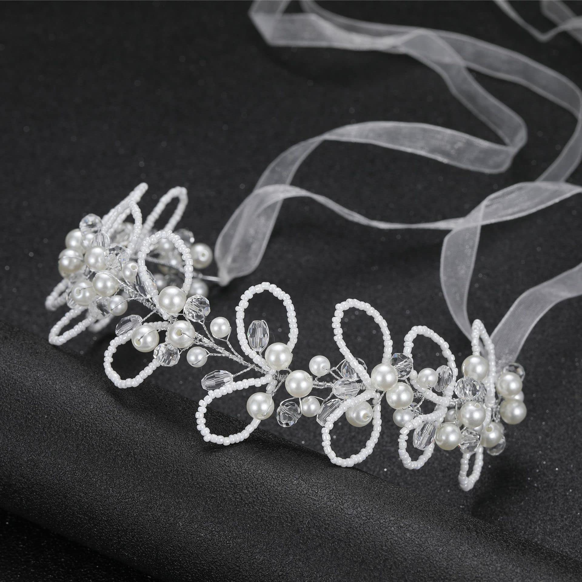 DABIN Perlen-Stirnbänder Für Frauen, Mädchen, Braut, Hochzeit, Haarbänder, Weiße Blumen-Diademe Und Kronen, Koreanische Mode, Kopfschmuck, Haarschmuck