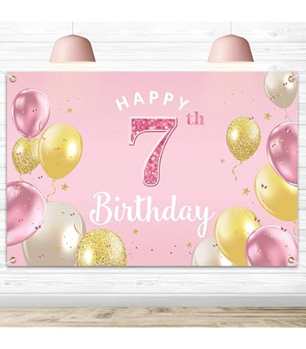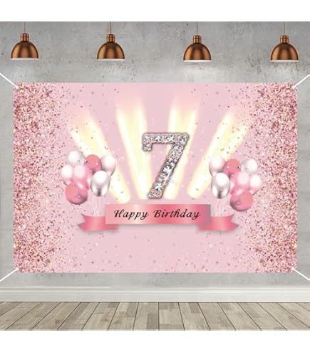 ❤️ Einfach aufzubauen: Happy 7th Birthday Party Hintergrund mit Kupferösen an 4 Ecken, einfach durch die Kupferöse hängen (Seil nicht im Lieferumfang enthalten). Hinweis: Nicht waschbar, die Farbe kann im Wasser verblassen. ❤️ TOLLES GEBURTSTAGSGESCHENK - Das schöne Schild Poster wird die Geburtstagsfeier erhellen und einen tiefen Eindruck auf die Gäste hinterlassen. Mädchen 7 Geburtstag Ideen 7. Geburtstag Deko Mädchen, Happy 7th Birthday Banner Blumen Stoff Schild Plakat Türdekoration, 7. Geburtstag Hintergrund Banner, Geburtstagsfeier Willkommensschild, Lila Kindergeburtstag 7 Jahre Deko Partydeko-Set zum 7 Geburtstag, 5-teilig, inklusive Heliumballon ❤️ Langlebiges Material: aus Vinyl, langlebig und reißfest, hochauflösender Digitaldruck mit auffälligen Details und lebensechten Farben. ❤️ Angemessene Größe: 59x35., 4/150cmx90cm, kann als 7., Geburtstag Party Hintergrund, Willkommensschild Poster, Tischdekoration, Kuchendekoration, Tapete, Tischdecke, Vorhang oder Empfangsschild verwendet werden, geeignet für den Innen- oder Außenbereich. Wie man Falten entfernt: Da das Poster gefaltet verschickt wird, kann es bei Erhalt zu Falten kommen. Sie können es auch mit Klebeband an die Wand oder Fenster kleben. Es gibt 4 Vorschläge: 1., Hängen Sie es auf und dehnen Sie es für 2-3 Tage., 2., Rollen Sie es für 2-3 Tage fest auf einem Zylinder auf., 3., Bügeln Sie die Rückseite trocken bei niedriger Hitze., 4., Wenn Sie nur ein Dampfbügeleisen haben, legen Sie ein Tuch zwischen die Rückseite und das Dampfbügeleisen, um das Wasser aufzunehmen. Poster for Sale mit Glückliches 7. Geburtstags-Mädchen von samim87 Elegantes Design: Happy 7th Birthday Banner mit glitzernden Punkten und Diamant-Element-Design, schöner Hintergrund für eine Geburtstagsfeier. ️ Langlebiges Material