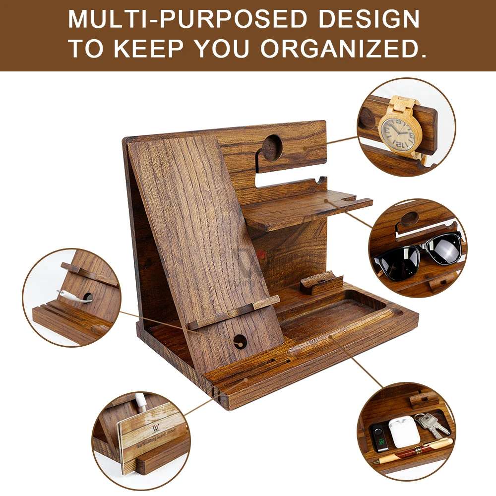 Yorbay Telefon Docking Station Holz, Geschenk Für Männer Ehemann Freund, Schreibtisch Organizer Für Uhren Handy Tablet Brillen Schlüssel Geldbörsen