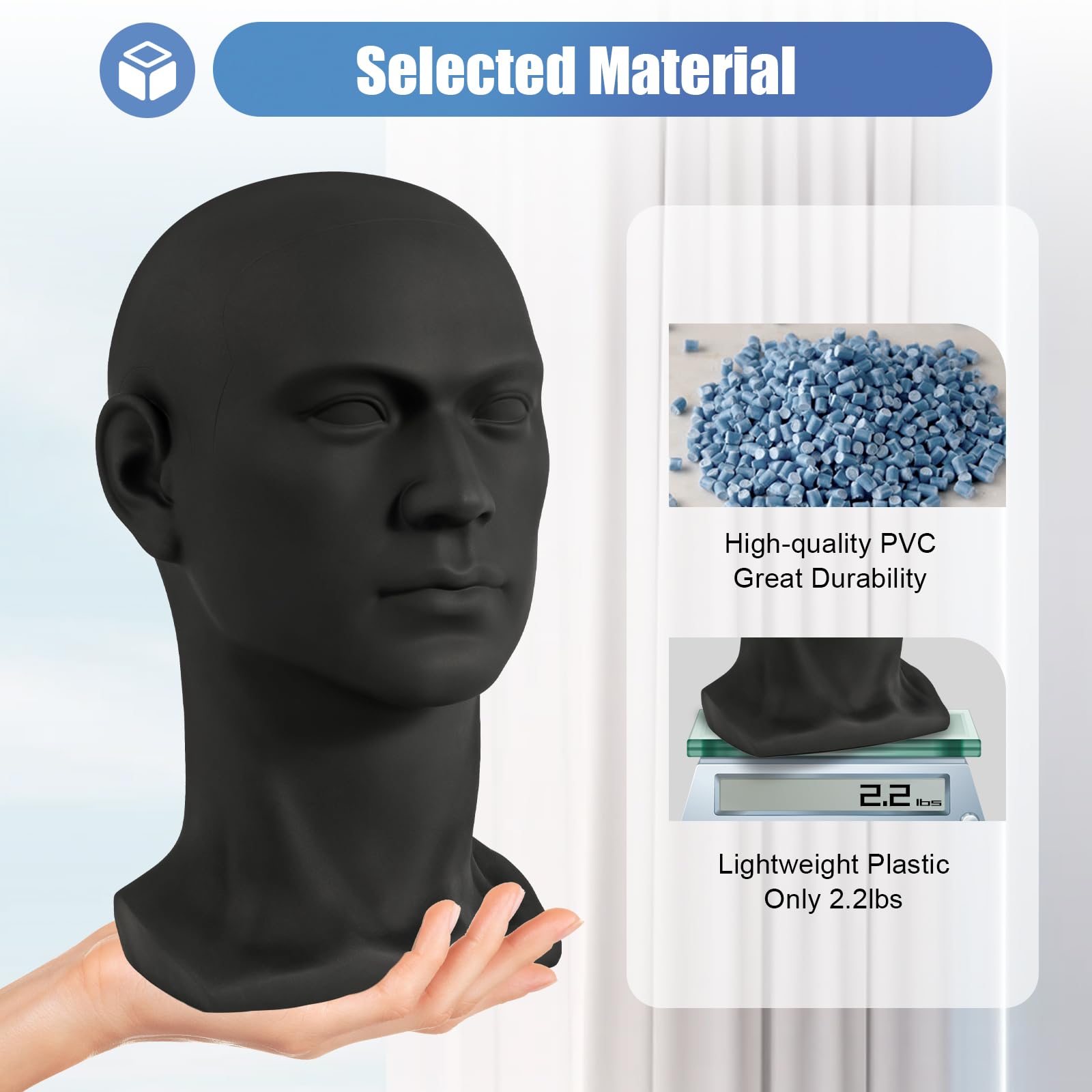 Sie müssen nur den Schmuck in allen Teilen davon tragen, die Bedienung ist sehr einfach. Großartiges Display-Tool: Der Kopf der Schaufensterpuppe bietet einen großen Kontrast und einen besseren Kontext für Ihre Perücken, perfekt für die Hervorhebung aller Arten von Perücken, Hüten, Brillen, und so weiter. Große Haltbarkeit: Der Kopf der Schaufensterpuppe ist aus hochwertigem PVC-Kunststoff gefertigt, der sehr widerstandsfähig gegen Beschädigungen ist. Einfach zu verwenden Es kann unabhängig oder mit Clips oder Stativen verwendet werden. Spezifikation Material: PVC Farbe: Helles Schwarz Höhe: Ca., 30 cm/11., 8 Kopfumfang: Ca., 50 cm/19., 7 Gewicht:0., 7kg/1., 54lbs Inklusive Paket 1*Mannequin Kopf Anmerkungen Bitte erlauben Sie einen leichten Farbunterschied aufgrund des Lichts und 1-3cm Fehler aufgrund der manuellen Messung und stellen Sie sicher, dass Sie nichts dagegen haben, bevor Sie bestellen. Guter Simulationseffekt: Es ist streng nach den Proportionen der menschlichen Gesichtszüge und des Kopfes entworfen, so ist es mehr Referenzwert, um es als Modellkopf zu verwenden. Es ist auch geeignet für Geschäfte, Salons oder Hutgeschäfte als Ausstellungsmodell für Perücken, Hüte, Turbane, Nackenschals und Haarbänder. LUNICASHA Männlich Modellkopf, Haarperücken Kundenbetreuung: Wir sind bestrebt, qualitativ hochwertige Produkte und Dienstleistungen anzubieten. Große Stabilität Die Schaufensterpuppe hat einen stabilen Sockel und Befestigungslöcher, um sie stabil zu halten. Schaufensterpuppe Kopf 50cm Männlich Modellkopf PVC Perückenkopf Dekokopf Mannequin Kopf Dekorative Funktion Es kann nicht nur als Ständer für Sie verwendet werden, um Zubehör zu Hause zu platzieren, sondern es kann auch als Modell für die Anzeige von Artikeln in Geschäften verwendet werden. Leichtgewicht: Es wiegt nur 1., 54lbs, wenn es als Fenstermodell verwendet wird, können Sie es leicht bewegen.