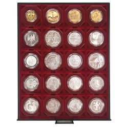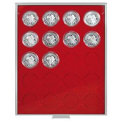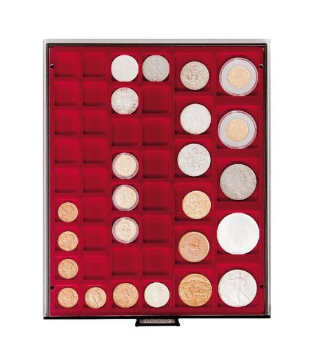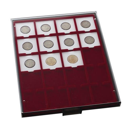 LINDNER Münzbox Münzboxen Rauchglas DUNKELROT Mit Eckigen Vertiefungen