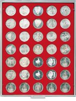 Münzbox Marine Mit 30 Runden Vertiefungen Für Münzkapseln Mit Außen-39,5 Mm, Z.B. Für Deutsche 20 Euro-/10 Euro-Silbermünzen In LINDNER Münzkapseln