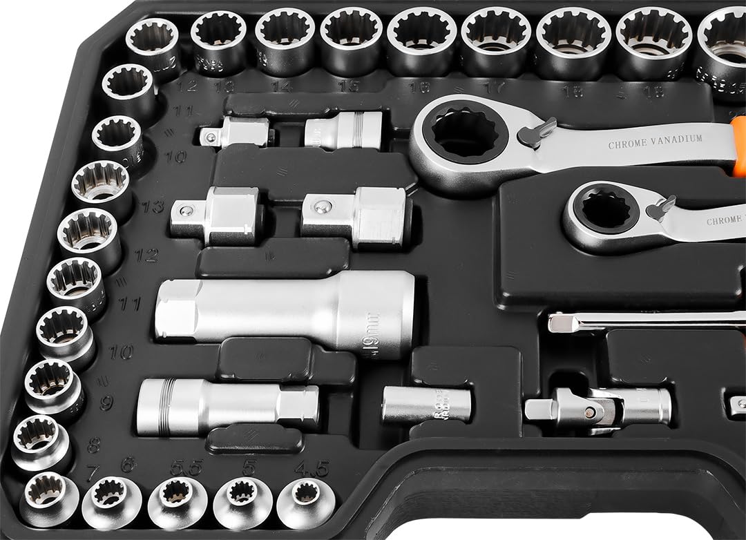 PARKSIDE RATSCHEN-BIT-SET 81-TEILIG Mit Einhandbedienung Inklusive Ratsche 395005762714 Türmontage-Ratsche, ohne Zubehör, belastbar bis 80 Nm – Paschke... Enthält: weicher Griff mit umkehrbarem Ratschen-Schraubendrehergriff. 1 Stück magnetischer Bithalter 1 Stück Stecknuss Bithalter 1 Stück 1/4 Zoll Vierkant x 1/4 Zoll Sechskant x 1 Zoll Verlängerung. Herkunftsland: Taiwan, Provinz China , Produkttyp: Autozubehör Verpackungsmaße: 20,1 cm L x 2,3 cm B x 5,8 cm H , Produktgewicht: 1,7 Pfund • 30 Tage kostenlose Rücksendung • schnelle Lieferung • viele Artikel direkt verfügbar Werkzeughalter für Ratsche | 003.5.849 1 Stück 1/4 Zoll Vierkant x 1/4 Zoll Sechskant x 2 Zoll Verlängerung., 1 x Flügelmutter-Schraubendreher. Ratschenkasten Makita MAS Hubarbeitsbühnen Schutz Set Makita Ratschenset