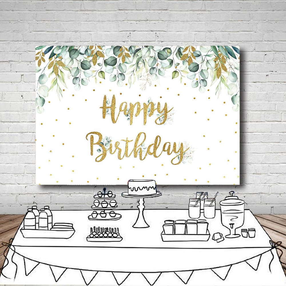 MEHOFOND 2,1 X 1,5 M Grüne Und Goldene Blätter Geburtstag Hintergrund Für Eukalyptusblätter Punkte Fotografie Hintergrund Kuchen Smash Tischdekoration Fotostudio Requisiten Supplies