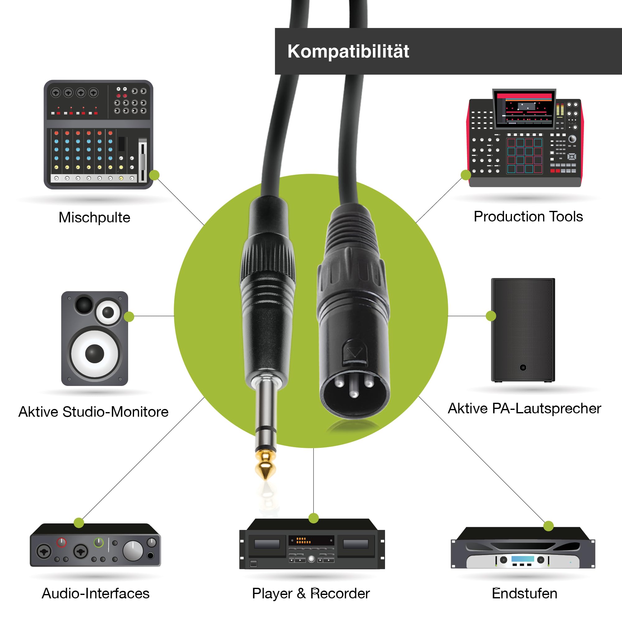 QUALITÄT: Dieses Audiokabel mit hochwertigen 3-Pin female bzw 6., 3mm Klinken Steckern überträgt, dank der robusten Konstruktion zuverlässig und sorgt für eine optimale Zugentlastung Aktive Lautsprecher Aktive PA-Lautsprecher und Studiomonitore können mithilfe des symmetrischen BEMERO Linekabels an Live-, Studio und DJ-Mischpulte sowie Audio-Interfaces angeschlossen werden. Verbindungskabel XLR male auf Klinke mono, 0,3 m, schwarz Breite Kompatibilität Mischpulte Das BEMERO Linekabel ist perfekt geeignet, um aktive Lautsprecher und Outboard-Equipment mit symmetrischen Anschlüssen an Studio-, Live- oder DJ-Mischpulte anzuschließen. Production Tools Verbinde mit diesem BEMERO Linekabel Productions-Tools, Sampler, Drum-Maschines usw. Dadurch ist dieses hervorragend abgeschirmte Kabel sehr unempfindlich gegenüber Einstreuungen und Brummschleifen. Sichere Signalübertragung Das 3-polige Audiokabel ist aufgrund seines symmetrischen Aufbaus äußerst unempfindlich gegen äußere Störungen und somit absolut zuverlässig bei der Signalübertragung - auch über längere Strecken. Audio-Interfaces und Recorder Verbinde deine Studiomonitore und weiteres Equipment zuverlässig mit Audio-Interfaces sowie Aufnahme- und Abspielgeräten, indem du dieses BEMERO Audiokabel verwendest. ROBUST: Das 3-polige XLR-Kabel ist dank seines symmetrischen Aufbaus ausgesprochen unempfindlich gegen äussere Störungen und somit absolut übertragungssicher BEMERO Notenständer (Neu und originalverpackt) in Luzern für CHF 5 SCHWEIZER BRAND: Bemero hält ein ausgewähltes Portfolio an hochwertigen Accessoires für Studio und Bühne, zu einem überzeugenden Preis- Leistungsverhältnis bereit Klinke Xlr Schwenkanschlag Für MINIPRESS M, Symmetrisch, Schwarz-verzinkt | KOCH Optisches Audiokabel 3m Inklusive BEMERO Klettkabelbinder Egal ob auf der Bühne, im Studio oder im Bandraum - der zu jedem Kabel mitgelieferte BEMERO Klett-Kabelbinder hilft beim Ordnen, Fixieren und Sortieren der Kabel. Bereits ab 13,30 € ✓ Große Shopvielfalt ✓ Testberichte & Meinungen ✓ | Jetzt Adam Hall 6 m symmetrisch REAN XLR male auf 6,3 mm Klinke stereo günstig kaufen bei Robuste XLR- und Klinkenstecker Dieses BEMERO-Audiokabel ist mit hochwertigen, schwarzen 3-Pin-XLR- und Klinkenstecker konfektioniert.