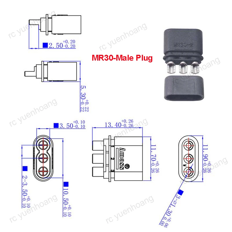 Paket eingeschlossen: 5 * Amass MR60 Männlich Stecker 5 * Amass MR60 Buchse Adapter 10 * Kunststoffgehäuse MR60 Stecker · 3-polig · Nylon · Kontakte vergoldet · Amass High... Artikel Name: Amass MR60 Männlich Stecker und Buchse Adapter Gehäusematerial und Oberflächenbeschichtung: Messing und vergoldet Material der Isolierung: PA66 Durchgangswiderstand: 0., 5mΩ Nennspannung: DC 500V Nennstrom: 30A Momentanstrom: 60A FR-Stufe: UL94 V0 USE-Zeiten: 1000 Mal Kabel SPEC: 12AWG Betriebstemperatur: -20℃--120℃ 3-polige Steckverbinder. XT90 Amass 5 Paar Akku stecker (Neu (gemäss Beschreibung)) in Zuverlässige und sichere Verbindung zu Batterien. Nennstrom: 30A; Momentanstrom: 60A , 3-polige Steckverbinder. LINSYRC 10 Paar Amass MR30 Stecker Männlich Und Buchse Adapter Mit Ummantelung Für RC Lipo Akku RC Multicopter 30A Nennstrom und hochwertiges Nylon LINSYRC 5 Paar Amass MR60 Männlich Stecker und Buchse Adapter 3.5mm Bullet Stecker für Motor ESC Anschluss · Brass · 5,05,0 von 5 Sternen. (5) · 10,99 €10,99