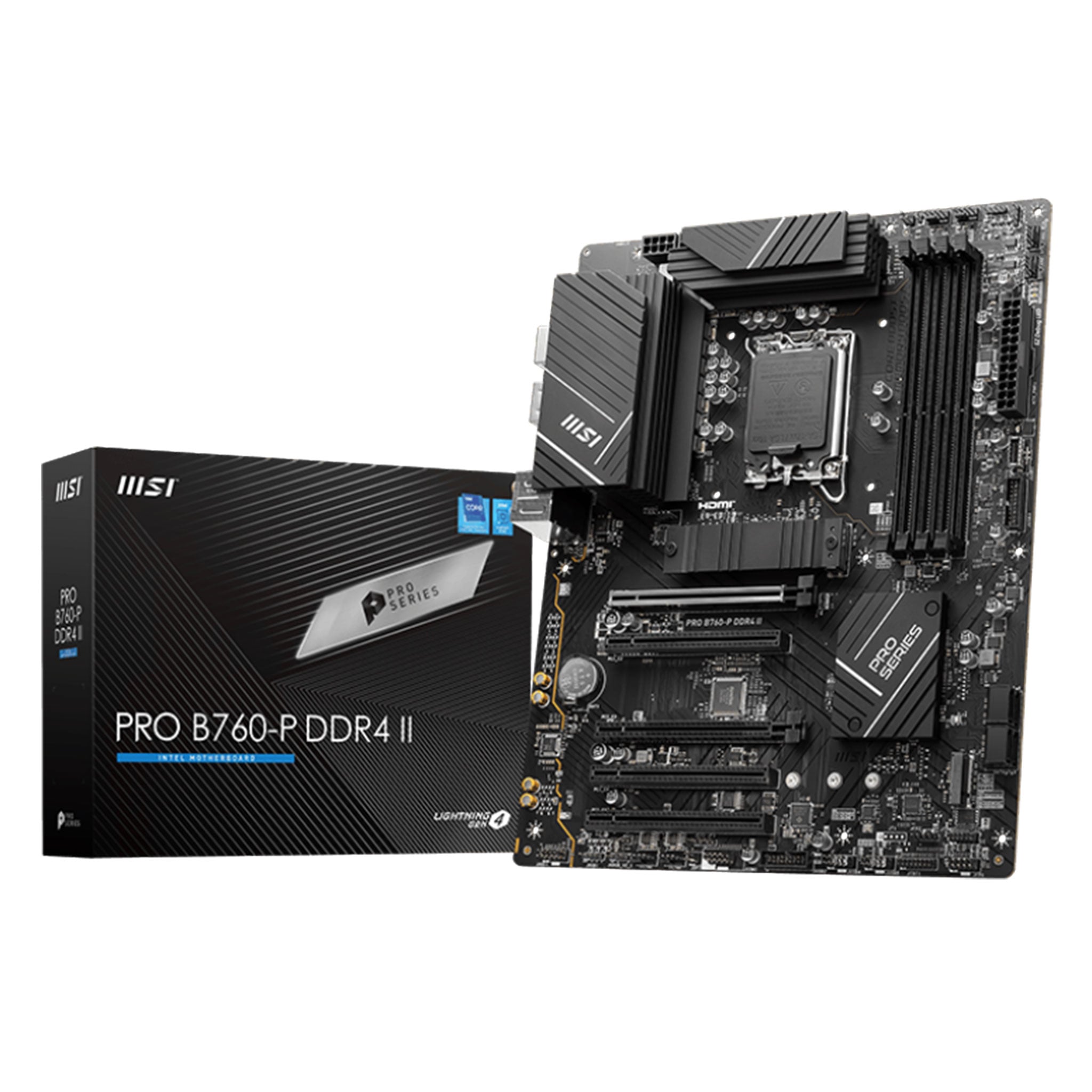 MSI PRO B760-P DDR4 II Mainboard, Micro-ATX - Unterstützt Intel Core Prozessoren Der 12., 13. & 14. Generation, LGA 1700 - DDR4 Memory Boost 5333+MHz/OC, PCIe 4.0 X16 Slots, M.2 Gen4 Slots