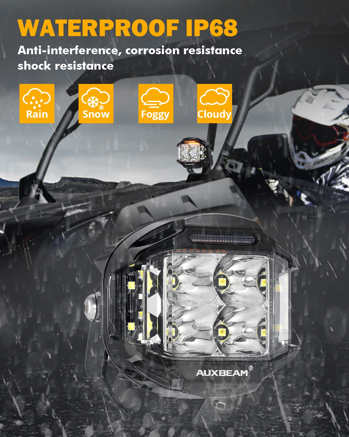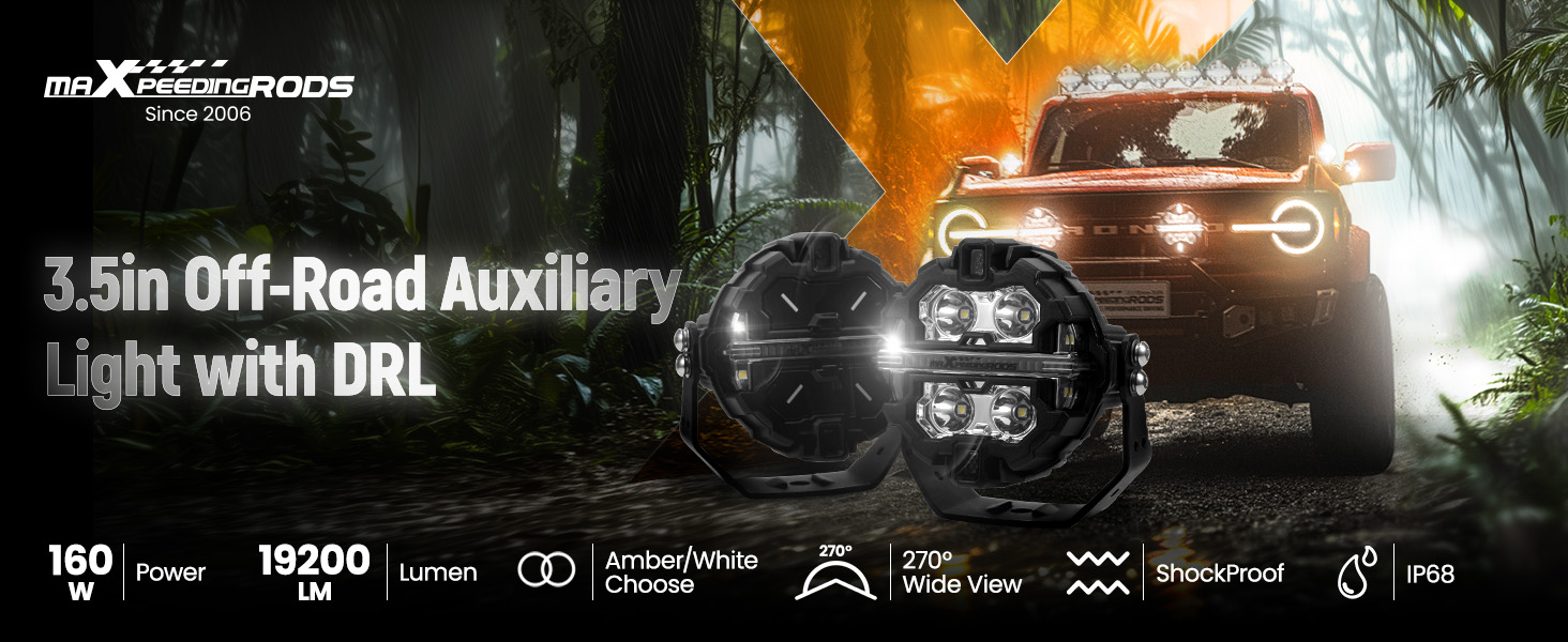 Atmosphärenbeleuchtungsdesign: Die LED-Fahrlichter wurden sorgfältig mit RGB-Atmosphärenbeleuchtungsfunktion entworfen und können mit einer Fernbedienung zwischen 7 Farben umgeschaltet werden. Panoramastrahl: Offroad-Scheinwerfer, die mit einer ultrabreiten LED-Beleuchtung von 270 Grad und einer Projektionsreichweite von 350 Metern ausgestattet sind. MaXpeedingrods 3.5 Inch 160W LED Off Road Lights19,200LM, 7 RGB Mit 4 SST – 20 Perlen sowohl im Haupt- als auch im Seitenlicht sorgen sie für ein ausgewogenes Verhältnis von Energieeffizienz und intensiver Helligkeit. In Verbindung mit dem Offroad-Tagfahrlichtsystem erhöht es die Beleuchtungsfähigkeit des Fahrzeugs. It is strongly recommended that opaque covers (sold separately) be installed for street use to comply with regulations. Ensure installation and usage comply with local laws. Optimal für Offroad-Abenteuer, Angelausflüge und Wildnisjäger Es eignet sich für die nächtliche Suche und Rettung oder die Arbeitsbeleuchtung in Notfällen Gewährleisten Sie die Einhaltung der Verkehrsregeln, verbessern Sie die Ausleuchtung und warnen Sie Nachtarbeiter vor Gefahren. Drei-Modus-Licht: Die 12-Volt-LED-Leuchten wechseln dank austauschbarer Schirme nahtlos zwischen gelbem Flutlicht/Spotlicht und weißem Spotlicht. 160W Ultra-Bright Spotlight: The 160W off - road lights emit 19,200 lumens of brightness. With 4 SST - 20 beads in both main and side lights, they balance energy efficiency and intense brightness. Featuring 7 RGB colors and color-shifting mode, you can... Ultraheller 160-W-Scheinwerfer: Die 160-W-Offroad-Scheinwerfer strahlen eine Helligkeit von 19., 200 Lumen aus. Featuring 7 RGB colors and color-shifting mode, you can match your lights to your mood, music, or journey. Let the dynamic auto-cycle for a mesmerizing effect-your car will turn heads wherever you go The manufacturer is not responsible for legal violations caused by improper use.