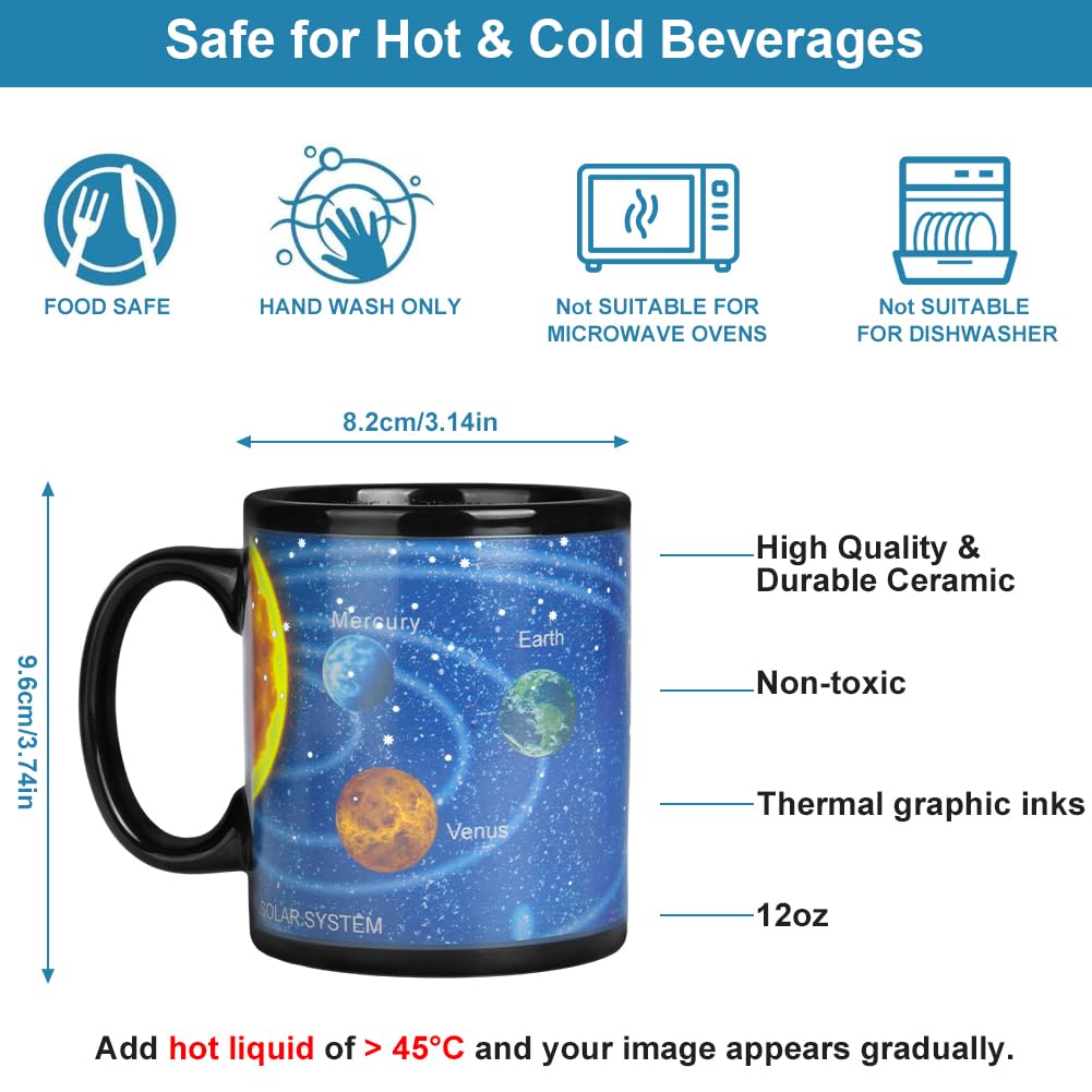 MUGKISS Kaffeebecher Mit Farbwechsel, Hitzeempfindliche Keramik, Magische Tasse, Teetasse, Sternbild, Geburtstagsgeschenk, Blaues Erdungsdesign, Sonnensystem