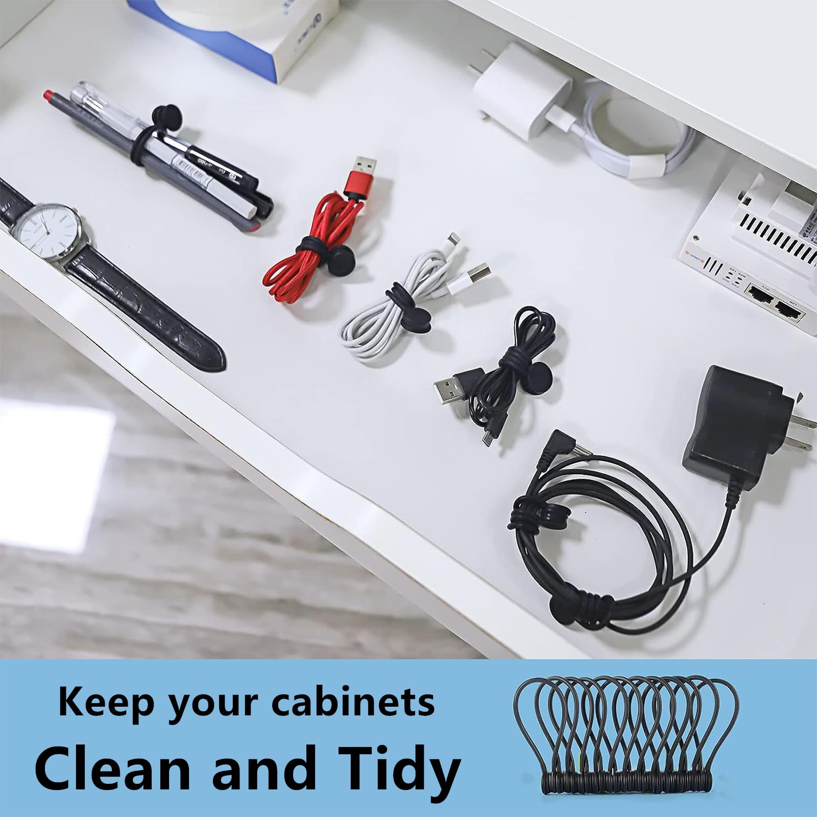 Mehr als nur magnetische Kabelbinder für Kabel, diese Bänder helfen dabei, mehrere Haushalts- und Büroartikel zu organisieren. Länge ungedehnt: 7,5 Zoll (19 cm) SOTOR Kabelbinder 10 Stück Magnetische Kabelbinder (10-Farben-Mischung Bleiben Sie organisiert mit einem 50er-Pack wiederverwendbarer magnetischer Kabelbinder. Diese magnetischen Silikonbinder bieten Platz für verschiedene Arten von Kabeln, von dünnen Kopfhörerkabeln bis hin zu sperrigen Stromkabeln. Der starke Magnet hält sicher an Ort und Stelle, während das glatte Silikonmaterial Schäden an empfindlichen Drähten verhindert. Die verstellbare Passform sorgt für einen perfekten Halt für verschiedene Anwendungen. Ob für zu Hause, im Büro oder auf Reisen, diese wiederverwendbaren Magnetbinder sind die ultimative Lösung für die Verwaltung von Kabeln, Ladegeräten und Zubehör. Das flexible Material ermöglicht ein einfaches Umwickeln verschiedener Kordelgrößen bei gleichzeitig sicherem Halt. Das eingebettete Magnetdesign sorgt dafür, dass sie bei häufigem Gebrauch nicht herausfallen oder sich lösen. Verwenden Sie sie zu Hause für Kabelmanagement, im Büro für die Schreibtischorganisation oder unterwegs, um Ihre wichtigen Dinge ordentlich aufzubewahren. Verstellbare und stabile Kabelbinder: Die aus flexiblem Silikon gefertigten magnetischen Kabelbinder widerstehen Rissen und Brüchen im Laufe der Zeit und bieten zuverlässige Haltbarkeit mit anpassbarer Größe, um verschiedenen Kabelmanagementanforderungen effektiv gerecht zu werden Diese wiederverwendbaren magnetischen Kabelbinder sind perfekt, um Ihr Zuhause, Büro und Arbeitsplatz zu organisieren. Maximale Dehnungslänge: bis zu 45 cm. Diese Kabelbinder sind in verschiedenen Farben erhältlich und erleichtern das Farbkodieren und Organisieren von Kabeln in jedem Raum. 50er-Pack für maximale Organisation: Diese 50er-Packung magnetischer Kabelbinder bietet eine kostengünstige und effiziente Möglichkeit, mehrere Kabel und Zubehör gleichzeitig zu verwalten. Verwenden Sie sie als kreative Lösung, um Schreibwaren zu bündeln, Zubehör aufzuhängen, Snackbeutel zu verschließen oder andere Dinge des täglichen Bedarfs zu verwalten. Von Schuhen bis zur Kleidung, von Sportgeräten bis zu Accessoires. Übernehmen Sie die Kontrolle über Kabelsalat und tägliche Organisation mit diesen wiederverwendbaren magnetischen Kabelbindern – die flexible, langlebige und vielseitige Lösung für jeden Raum. Vielseitiges Kabelmanagement – Diese magnetischen Silikon-Kabelbinder können als Kühlschrankmagnete, Lesezeichen, Schlüsselanhänger, Taschenclips und Büro-Organizer verwendet werden, was sie zu einem multifunktionalen Werkzeug für den täglichen Gebrauch macht. Verwenden Sie sie als Kühlschrankmagnete, Lesezeichen, Schlüsselanhänger, Taschenclips oder Büro-Organizer. Beseitigen Sie Unordnung und halten Sie Ihre Kabel mit diesen magnetischen Kabelbindern nicht verheddern. Warum sollten Sie diese magnetischen Kabelbinder wählen? Sicherer magnetischer Halt: Mit hochfesten eingebetteten Magneten sorgen diese magnetischen Kabelbinder für einen festen und zuverlässigen Halt, halten Ihre Kabel ordentlich gebündelt, ohne zu verrutschen. Die Verwendung dieser Magnetbänder zum Aufstecken ist einfach. Starker magnetischer Halt für sichere Organisation: Diese magnetischen Kabelbinder verfügen über leistungsstarke eingebettete Magnete, die einen sicheren und zuverlässigen Halt für Kabel, Ladegeräte und kleines Zubehör gewährleisten. Verfügbare Farben: Gelb, Blau, Rot, Grün, Weiß, Schwarz, Lila, Rosa, Grau, Lachs. Das Snap-On-Design erleichtert das Bündeln und hält Ihr Zuhause, Ihren Arbeitsplatz und Ihre täglichen Utensilien ordentlich organisiert. Mehrzwecknutzung über Kabel hinaus: Diese magnetischen Silikon-Kabelbinder sind nicht nur für die Organisation von Kabeln geeignet. Flexibles und langlebiges Silikon: Hergestellt aus hochwertigem Silikon, sind diese magnetischen Spiralbinder so konzipiert, dass sie wiederverwendbar, dehnbar und verschleißfest sind, was sie zu einer langlebigen Alternative zu Einweg-Kabelbindern macht. Sicher und einfach zu verwenden. Magnetic Cable Ties Magnetische Kabelbinder,9 Pcs Wiederverwendbar Silikon Kabel Organizer, Mehrfarbig Wiederverwendbare Kabelorganisation, Wiederverschließbar Cable Ties Fur Kopfhörer Kabel, USB-Kabel Und Ladekabel Gadgets Technik