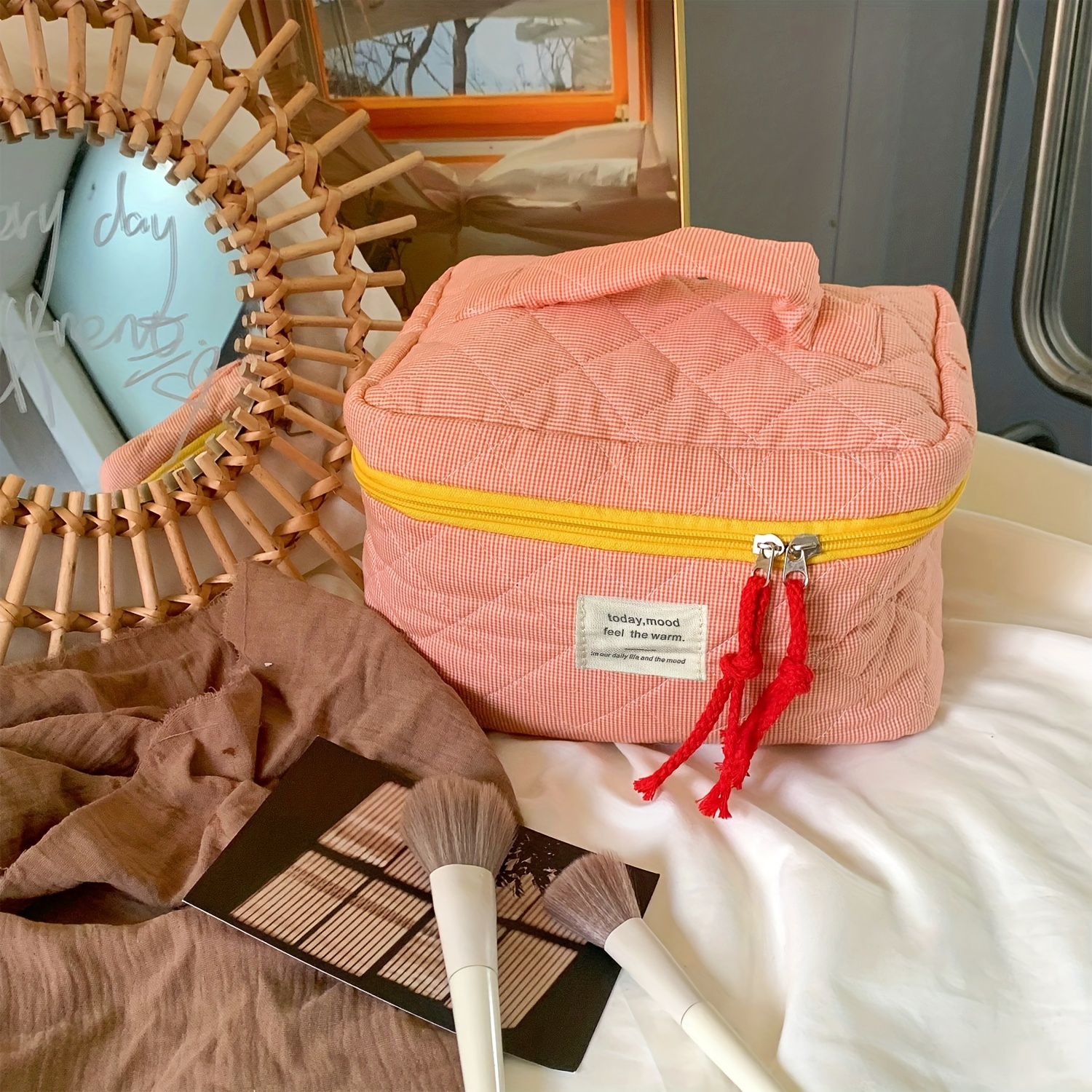 LUHOCIY Kosmetiktasche Blumen, Gesteppte Kosmetiktasche, Make Up Tasche, Make Up Bag, Aus Weichem Baumwollmaterial It Reißverschluss Zur Aufnahme Verschiedener Schminkutensilien