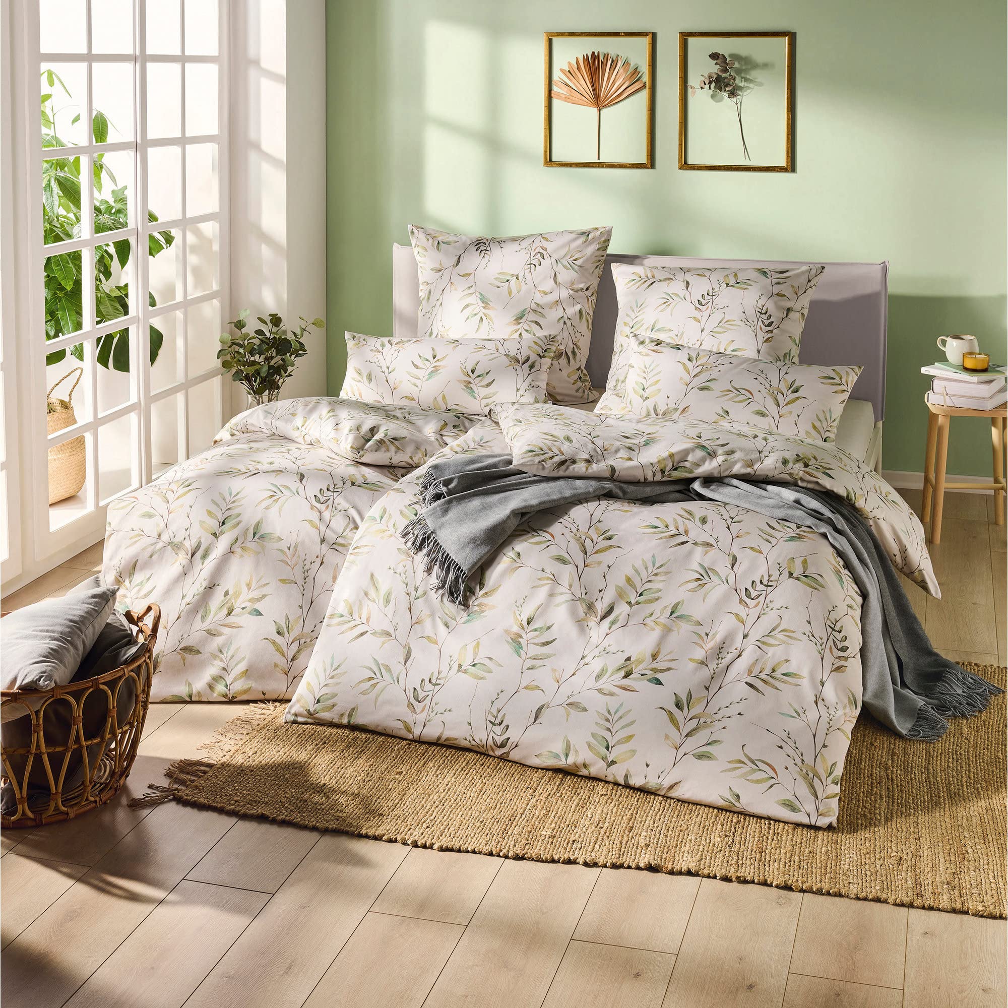 Empfohlene Spannbetttuchfarbe Estella 100-weiss, 565-verde Markenqualität aus Deutschland Für die Mako-Satin-Bettwäsche Meadow aus der IMPULSE-Kollektion empfehlen wir die Spannbetttuchfarbe 100-weiss oder 565-verde Die Trocknung kann im Trockner oder auf der Wäscheleine erfolgen. Es kann daher zu gewissen Farbabweichungen kommen! Vermeiden Sie allerdings, die Bettwäsche mit rauen Textilien zu waschen, das fördert die Bildung von Pilling. ESTELLA Impulse Mako Satin Bettwäsche sua 100% zertifizierter Baumwolle Design: Meadow - Grün Passende Spannbettlaken Farben: 100-Weiss und 565-Verde Verfügbare Größen: 135x200 cm, 155x220 cm, 200x200 cm, 200x220 cm, 240x220 cm Pflegehinweis: Waschen Sie die Bettwäsche separat oder mit gleichen Farben. Öko-Tex Standard 100 geprüft und zertifiziert, 60° Waschbar, Trocknerfest Estella Mako-Satin Wenbettwäsche Meadow. Holen Sie sich die Schönheit r Natur ins Haus. Gräser und Blumen setzen verträumte Akzente in Ihrem Schlafzimmer. Zusammen mit r feingestreiften Rückseite können Sie die Bettwäsche ganz nach Belieben arrangieren Mako-Satin Bettwäsche Estella Tiberio silber - Paisley | Betten Seifert Alle Garnituren werden mit einem oder zwei Kissenbezüge in 80x80 geliefert. Satin Bettwäsche 135x200 Estella Mako-Satin Bettwäsche Impulse Brittany 135x200 + 1 Bettwäsche 200x220 Baumwolle Hier empfehlen wir Color- oder Feinwaschmittel. 200x220+2x80x80 cm Impulse Aquarell multicolor günstig auf kaufen! Drehen Sie die Bettwäsche auf Links und schließen den Reißverschluss.