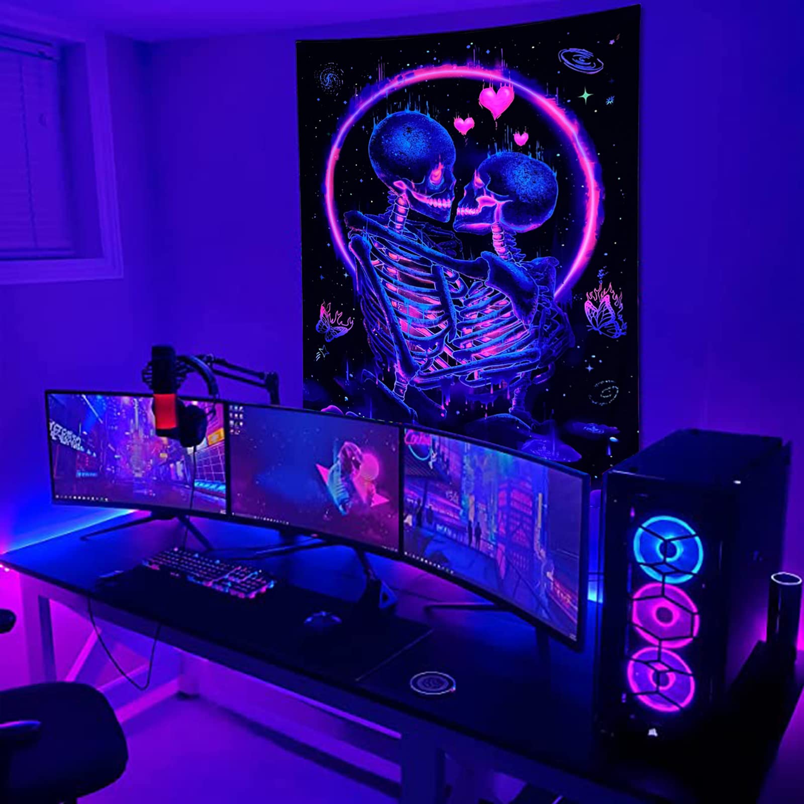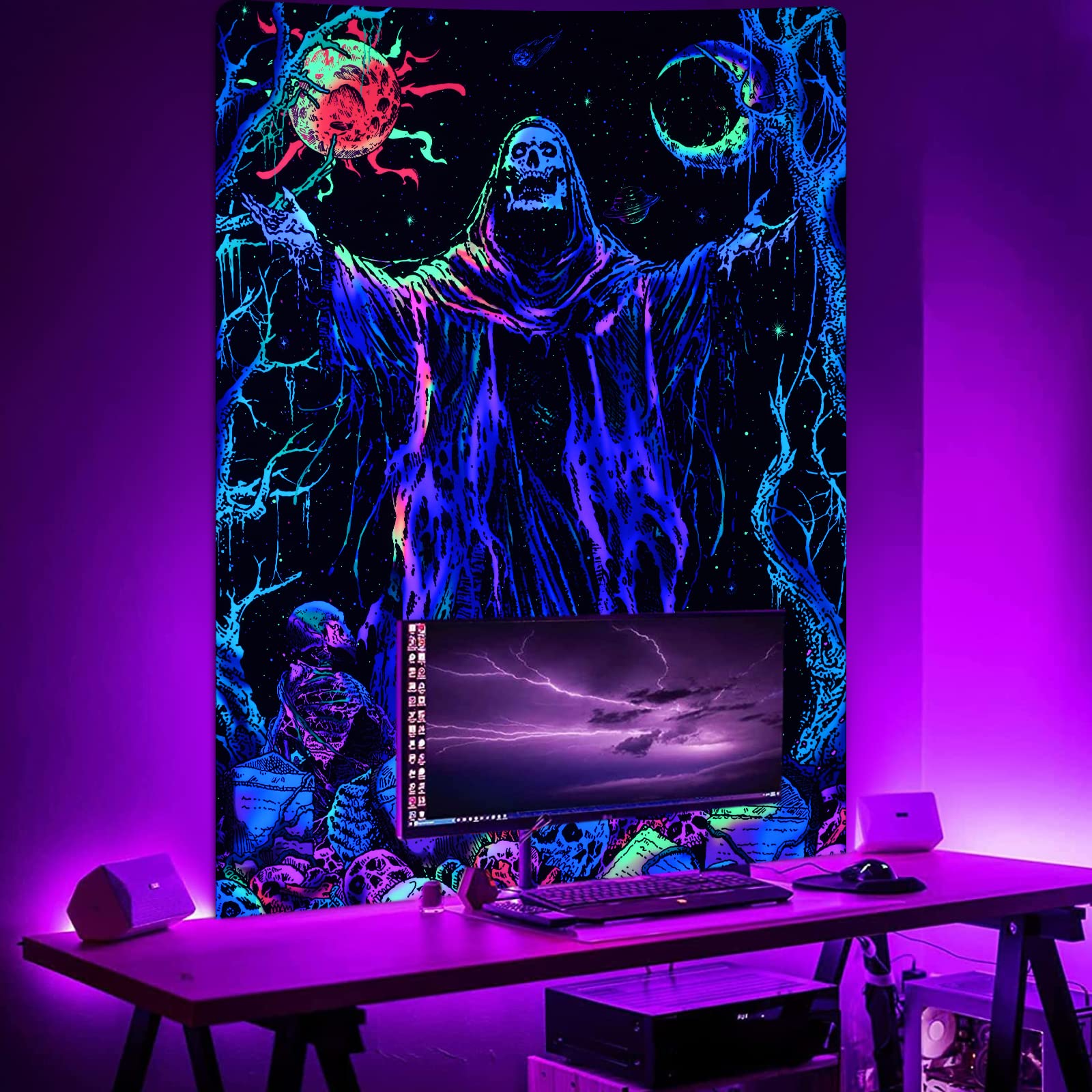 Manicer Schwarzlicht-Totenkopf-Tapisserie, UV-reaktives Neon, Das