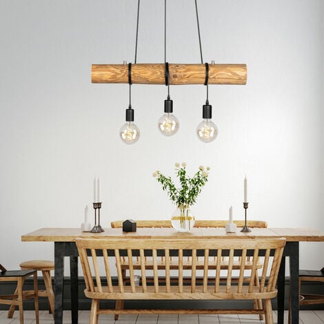 Ausgefallene Pendelleuchte Esstisch – Die 15 besten Produkte i Die Pendellampe bietet durch ihr schlichtes und zugleich wohnliches Design eine ansprechende Beleuchtung für jeden Raum – egal ob im Wohnzimmer, Esszimmer, Flur oder Schlafzimmer Die hängende Esstischlampe mit ihren vier aneinandergesetzen naturfarbenen Quadern aus FSC-zertifiziertem Gummibaum-Holz, von denen jeweils eine schwarze Fassung an einem schwarzen Kabel abgehängt wurde, fügt sich stilvoll in verschiedene Einrichtungsstile ein Kein Leuchtmittel im Lieferumfang enthalten Deckenlampe Holz EGLO Pendelleuchte Mareperla, Hängelampe Für Wohnzimmer Und Esstisch Deckenleuchte E27 Die Esstischlampe ist mit drei Metallschirmen in Schwarz versehen, die in eine Platte aus FSC-zertifiziertem Holz integriert wurden; Der Baldachin aus schwarzem Metall und die dazu passenden Holz-Spangen unterstreichen den industriellen Look der Leuchte