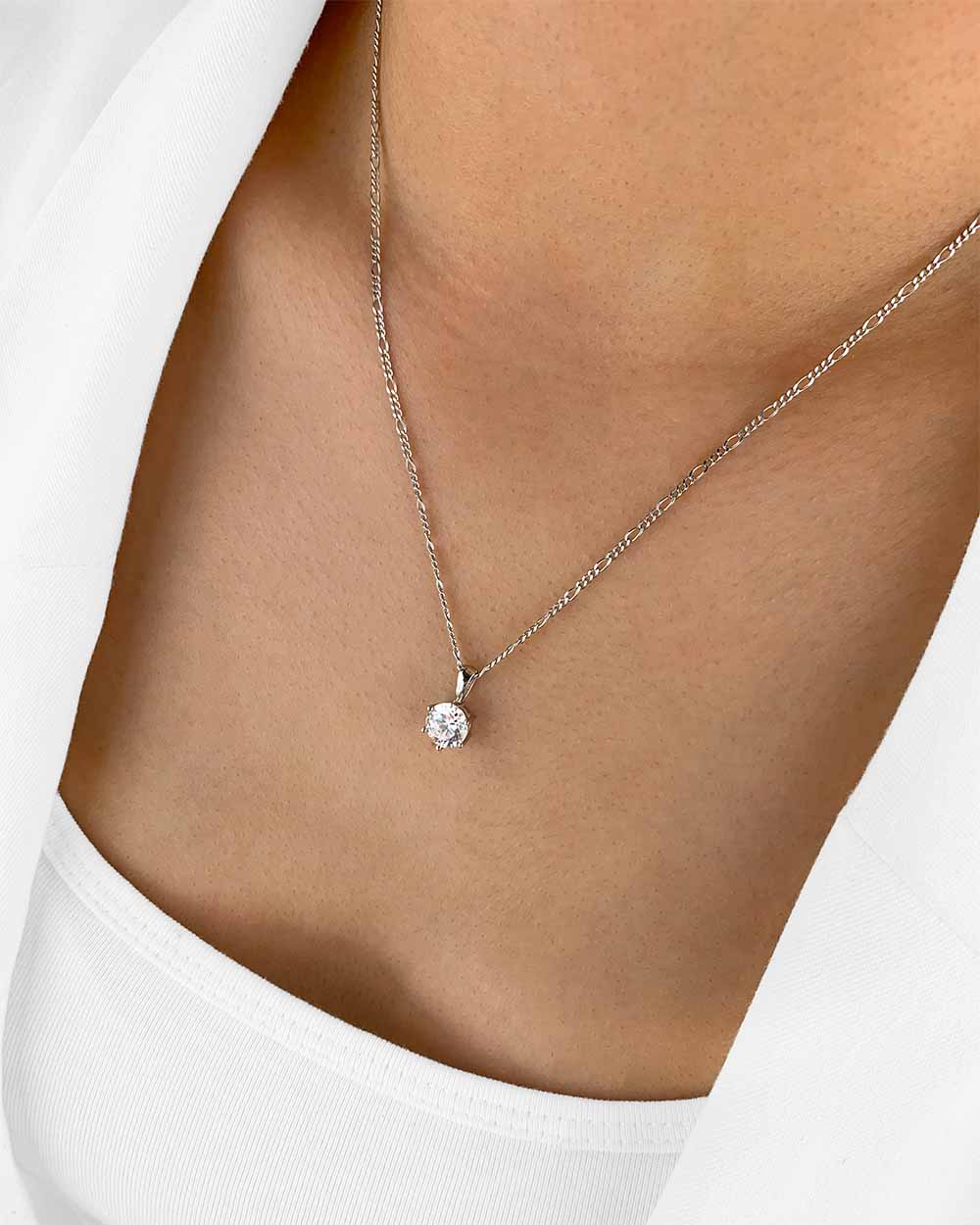 Damen Halskette Silber 925 Anhänger Kristall 'Marlene', Filigrane Silberkette Kristallanhänger, Dünne Figaro-Kette Kleiner Stein Frauen Kristallkette – Daniel Clifford