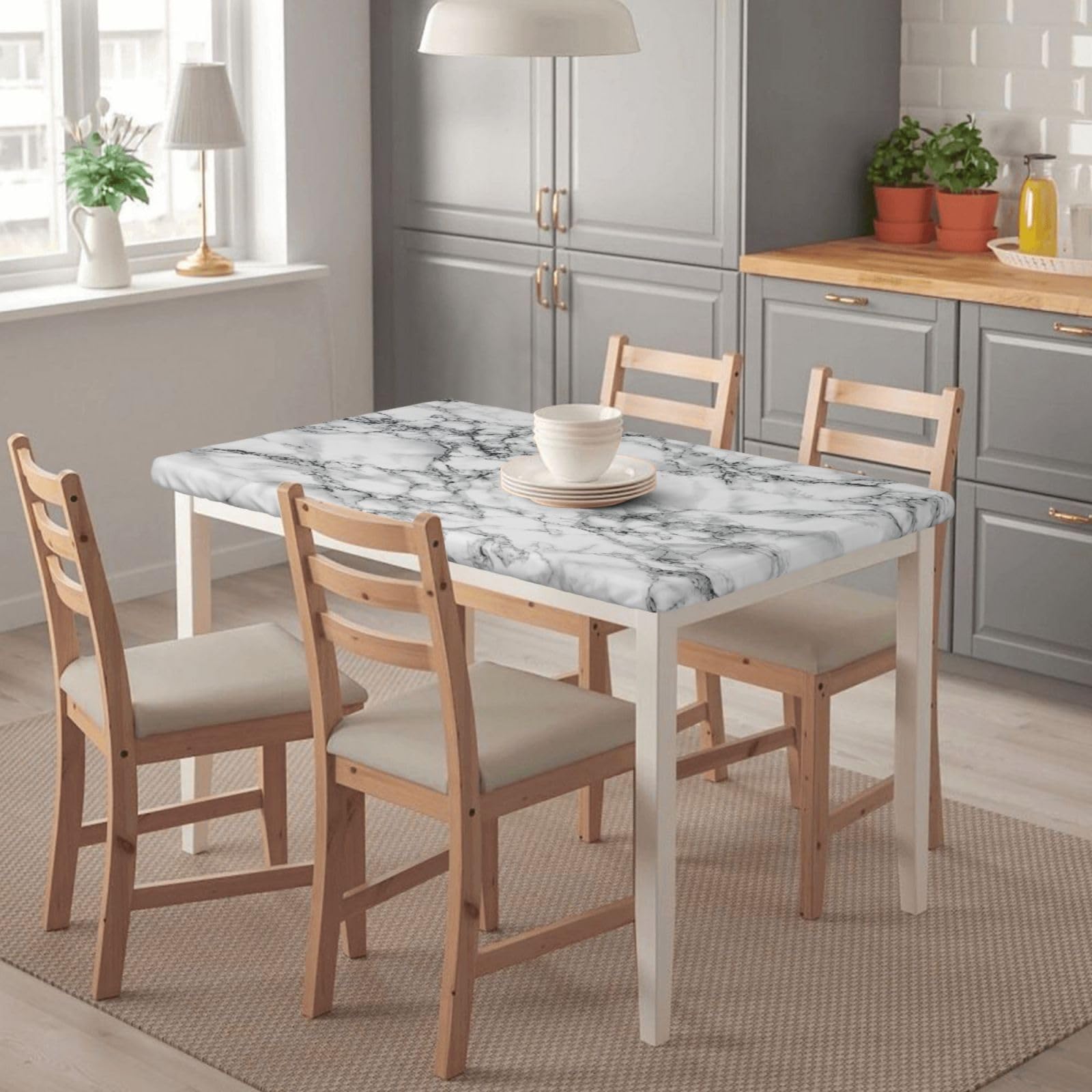 Fiokroo Schwarz Und Weiß Marmor Tischdecke Mit Elastischem Rand