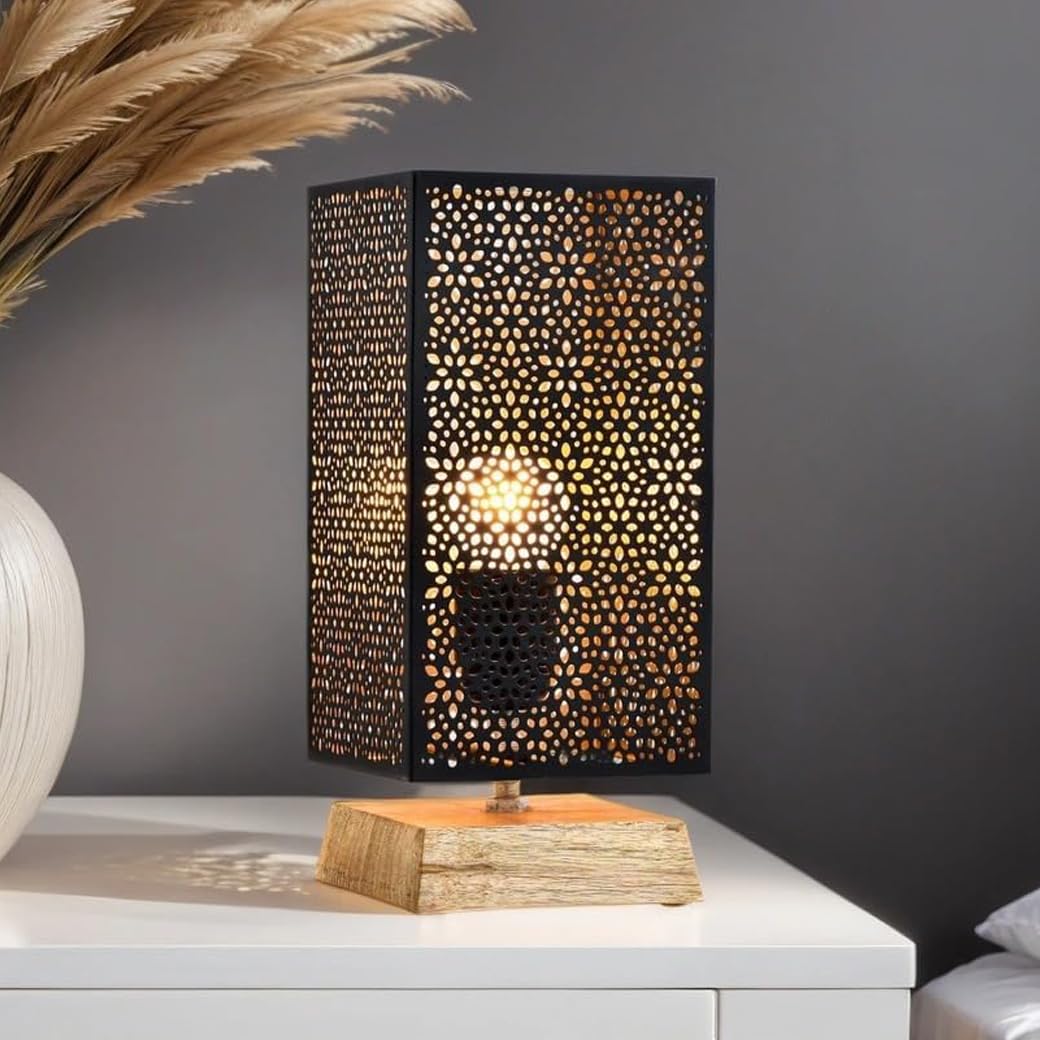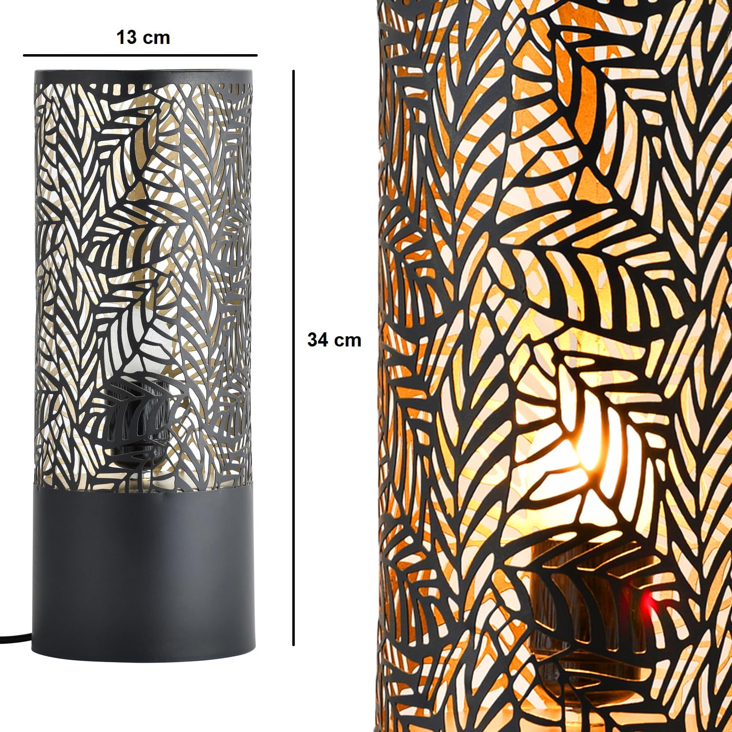 Marrakesch 2er Set Tischlampe Nachttischlampe 34cm Groß | Aesthetic Deko Lampe Im Wohnzimmer Schlafzimmer Oder Kinderzimmer | Moderne Tischleuchte Verdure Aus Metall Schwarz Gold E27 Lampenfassung