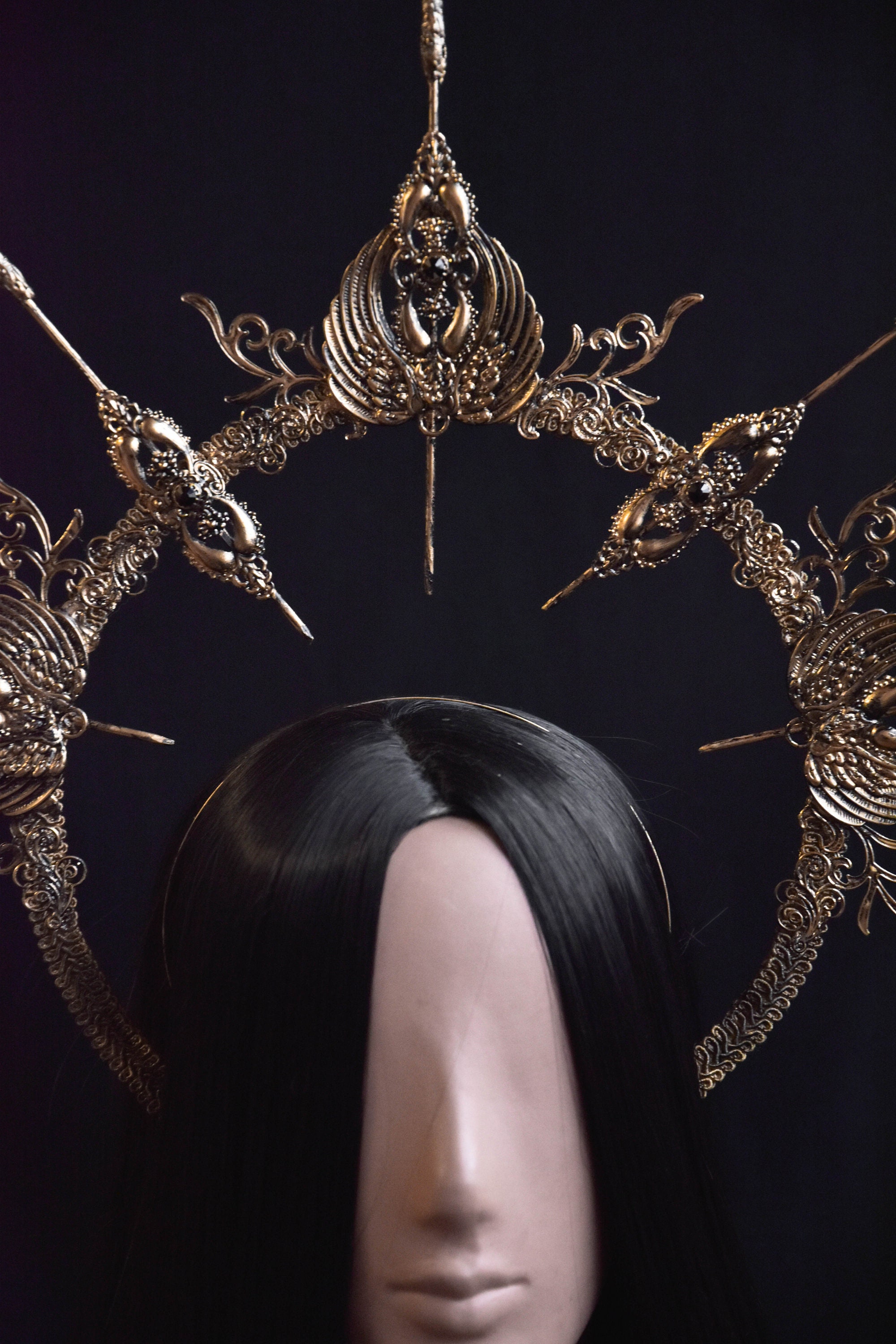 FakeFace Halo Krone Mary Göttin Stirnband Damen Halloween Kostüm Göttin Kopfbedeckung Sonnengott