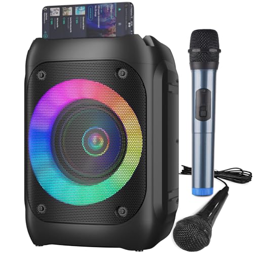 Gontence Karaoke Maschine Kinder Mit 2 Mikrofonen, Geschenkkarte, TF-Karte, LED-Lichtern, Stimme
