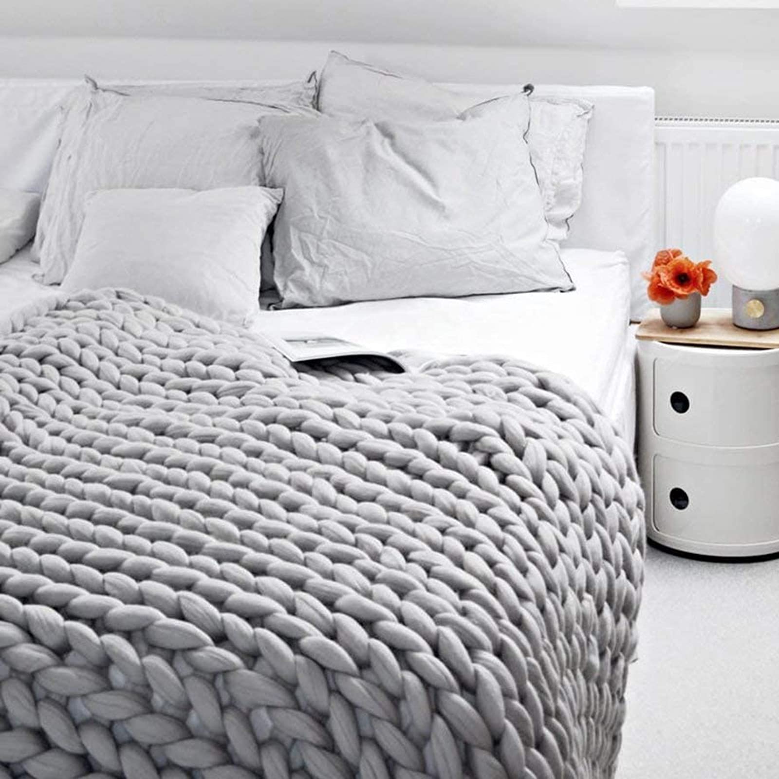 Grobstrick Weihnachten Groß 127x152 Cm Gehäkelte 3.2 Kg Decke – Maschinenwaschbar, Handgewebt, Weich, Gemütliche Chenille-Decke, Engmaschig, Atmungsaktive Boho-Decken Und Überwürfe, Hellgrau
