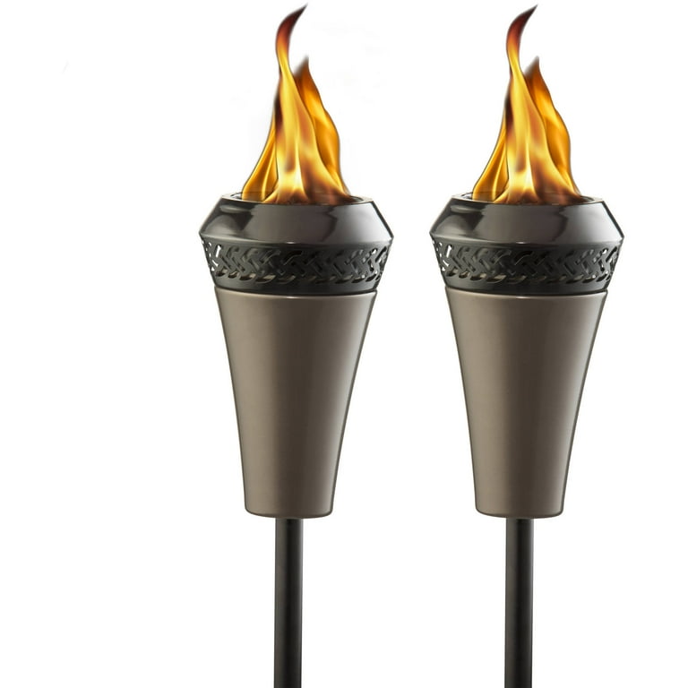 Matney Edelstahl Tiki Fackeln - 1,5m Outdoor Ölfackel Lampe Für Citronella - Garten Rasen Hinterhof Party - Inklusive Fiberglas Docht Und Löschkappe - 2er Set (Silberfackel Set - Zylinder