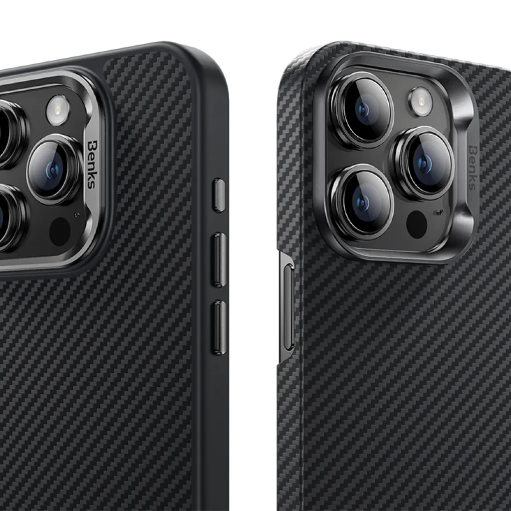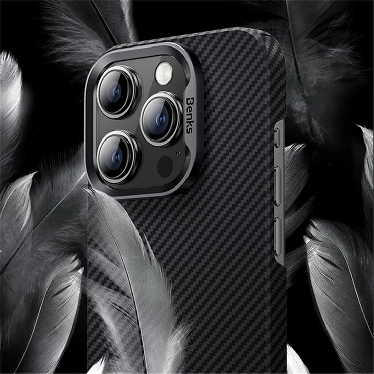 Apple IPhone 15 Pro Max Kılıf Magsafe Şarj Özellikli Karbon Fiber Tasarımlı Benks Aurora Armorair Kevlar Kapak