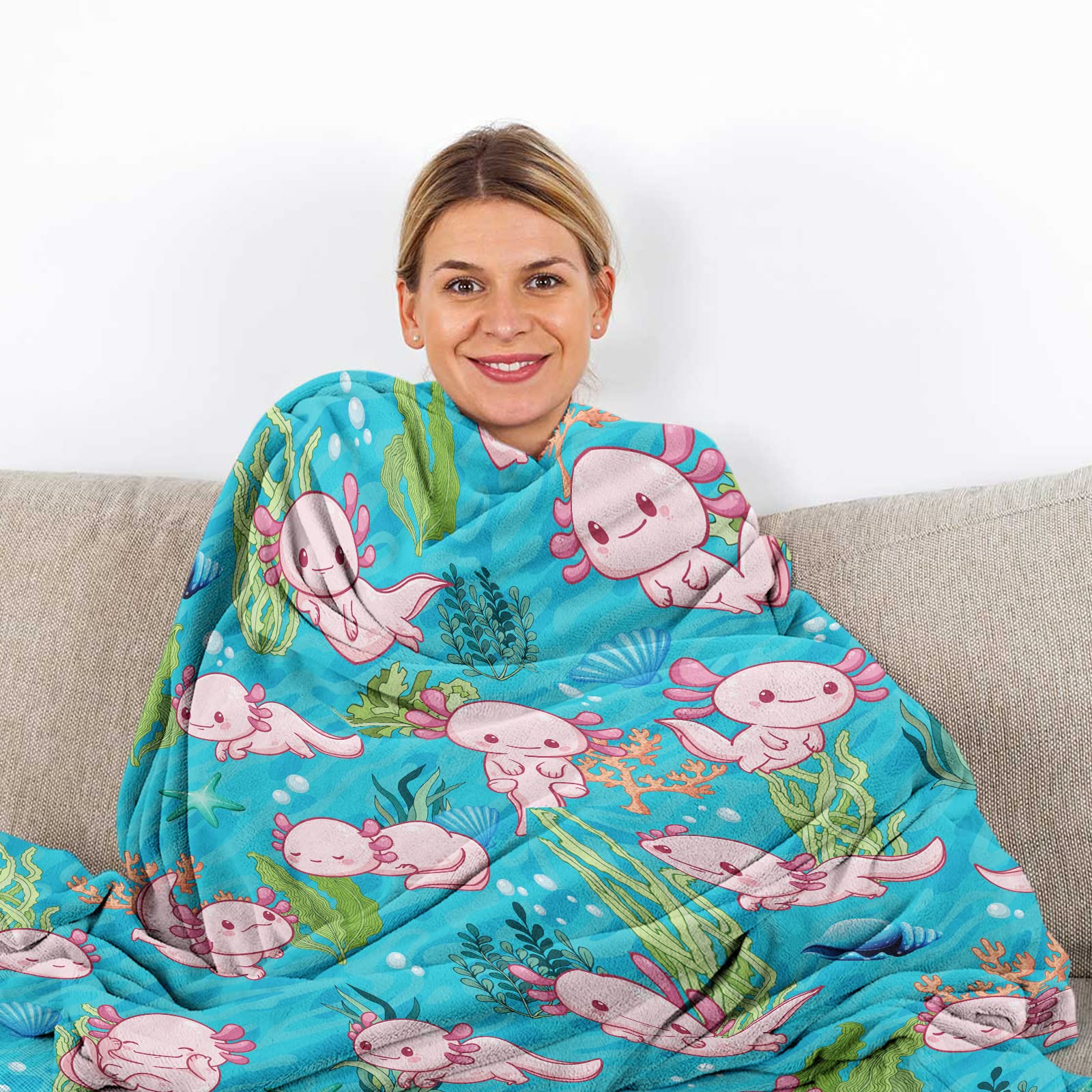 Axolotl Plüschdecke | Niedlicher Meerestier-Überwurf Für Kinder, Weiche