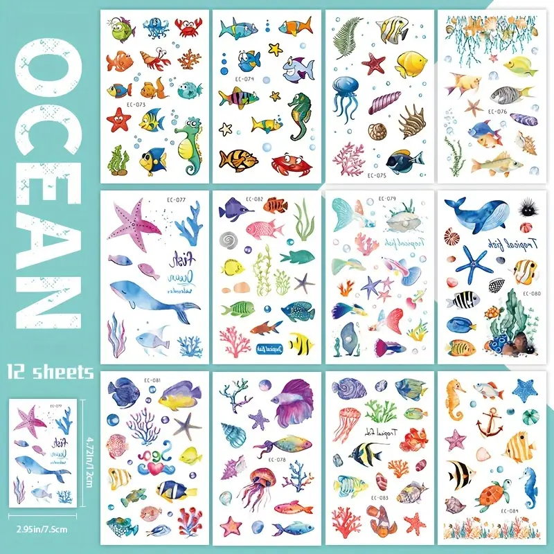 Glitzer Tattoo]enthält 20 blatt Glitzer Tattoo Aufkleber, mehr als 200 Designs, Mehrere Stile, süße Designs. Bestehend aus verschiedenen Arten von Waldtieren und Meerestiermustern, und Wird auf jeden Fall von Jungen und Mädchen begrüßt 12 Blätter Glitter Ozean See Tiere Temporäre Tattoos Für Jungen Und Mädchen, Niedliches sign Cartoon Wasserdicht Unterwasser Welt Tattoos, Geburtstagsparty Zubehör, Strand-thema Für Party, Befüllen Sie Strümpfe, Goodie Bags Füllstoffe, Dauert 2-5 Tage bei SHEIN entcken Produktmaterial: Die vorübergehenden Tätowierungen der Meereskreatur bestehen aus Premium -Wassertransferpapier, zuverlässig und sicher, was Ihrer Haut nicht schädlich ist und Sie sie mit Vertrauen verwenden können. Temporäres Tattoo Skull SET Urlaub Strand Meer Welle Sonne Spezifikation: Farbe: bunt Material: Wassertransferpapier Produktgröße: 12 x 6,8 cm Paketdetails: 20 Blätter temporäre Tattoos Hinweis: Aufgrund manueller Messung können Größe und Gewicht einen gewissen Fehler aufweisen. Einfach zu bedienen: Zieh zuerst den Covering -Film des Tattoo aus, steckst die Tattoo mit dem Gesicht nach unten auf deinen sauberen Körper, nass das Tattoo mit Wasser und drücke sanft, wartenTrocknen. Paketinhalt: Sie erhalten 20 Blätter temporäre Tattoos mit Meeresbewohnern in über 210 Stilen, darunter 10 Glitzer-Tattoo-Aufkleber und 10 normale Tattoo-Aufkleber. Unterwasser Geburtstag 12 Stück Schwarze Temporäre Tattoos Tropischen Meerestieren Seepferdchen Wal Hai Tattoo Aufkleber 6 X 10 Cm Body Art Geschenktutenfuller Ozean Party Dekorationszubehor G 601099558959554 Unter Dem Meer Nennen Sie alle Meerestiere zusammen Tattoos haben keine Angst vor Wasser, also können Sie mit ihnen bis zum Mondschein schwimmen. Schneiden, mischen und tätowieren Sie beliebig viele Körpertattoos. Nettes Design: Unsere temporären Tätowierungen für sind in einer Vielzahl von Mustern erhältlich, darunter Hai, Quallen, Tintenfische, Wal, Seestern usw.