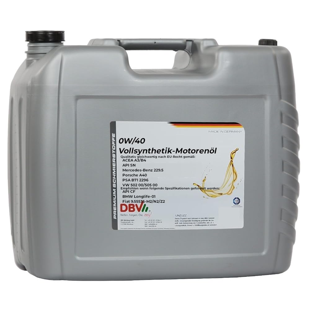 Motoröl Superol CC 30 / 20L im Kanister 9,30 € - 1.632,80 € 9,30€ - 7,85€ / l inkl. MwSt.zzgl. Versandkosten Gebinde Wähle eine Option 208-Liter-Fass 60-Liter-Fass 20-Liter-Kanister 5-Liter-Kanne 1-Liter-Dose Leeren 0W-40 DBV-Vollsynthetik-Motorenöl Menge In den Warenkorb Artikelnummer: n. v.Kategorie: PKW-Motorenöle Beschreibung Zusätzliche Informationen... Qualitativ gleichwertig nach EU-Recht gemäß: ACEA A3/B4 ? API SN Mercedes-Benz 229., 5 Porsche A40 ? PSA B71 2296 VW 502 00/505 00 Empfohlen wenn folgende Spezifikationen gefordert werden: API CF BMW Longlife-01 Fiat 9., 55535-M2/N2/Z2 Praxisvorteile: Kraftstoffersparnis durch Leichtlaufcharakteristik auch bei tiefsten Temperaturen sicherer Kaltstart und schnelle Motordurchölung sicherer Ganzjahresbetrieb durch hervorragendes Viskositäts-Temperaturverhalten und hohe Scherstabilität auch bei heißem Öl und extremen Belastungen stabiler Schmierfilm und bester Verschleißschutz höchste Oxidationsstabilität auf Basis vollsynthetischer PAO-Grundöle und modernster Additive hervorragend für Turbomotoren geeignet ? verhindert zuverlässig Verklebung, Verlackung und Verkokung von Zylindern, Kolben, Ventilen und Turboladern erstklassige Rationalisierungssorte mit multifunktionalem Einsatz in Diesel- und Ottomotoren verschiedener Hersteller ? zuverlässiger Schutz vor 'Schwarzschlamm' niedriger Ölverbrauch durch sehr geringen Verdampfungsverlust mischbar und verträglich mit konventionellen, sowie synthetischen Motorenölen. Motoröl vom Schmierstoffhandel beziehen Speziell entwickelt für modern und sportliche Pkw-Otto- oder Dieselmotoren, mit und ohne Turboaufladung. Um jedoch die vollen Produktvorteile von 0W/40 DBV Vollsynthetik-Motorenöl auszuschöpfen, wird ein vollständiger Ölwechsel empfohlen., Vollsynthetisches Leichtlauf-Motorenöl 0W/40 DBV Vollsynthetik-Motorenöl zeigt ein exzellentes Kaltstartverhalten und schnelle Durchölung bei niedrigsten Temperaturen. Castrol 0w20 Meguin Megol Motorenöl Premium Performance 0W-20 Im 5 Ltr. Kanister Motoröle Für Autos