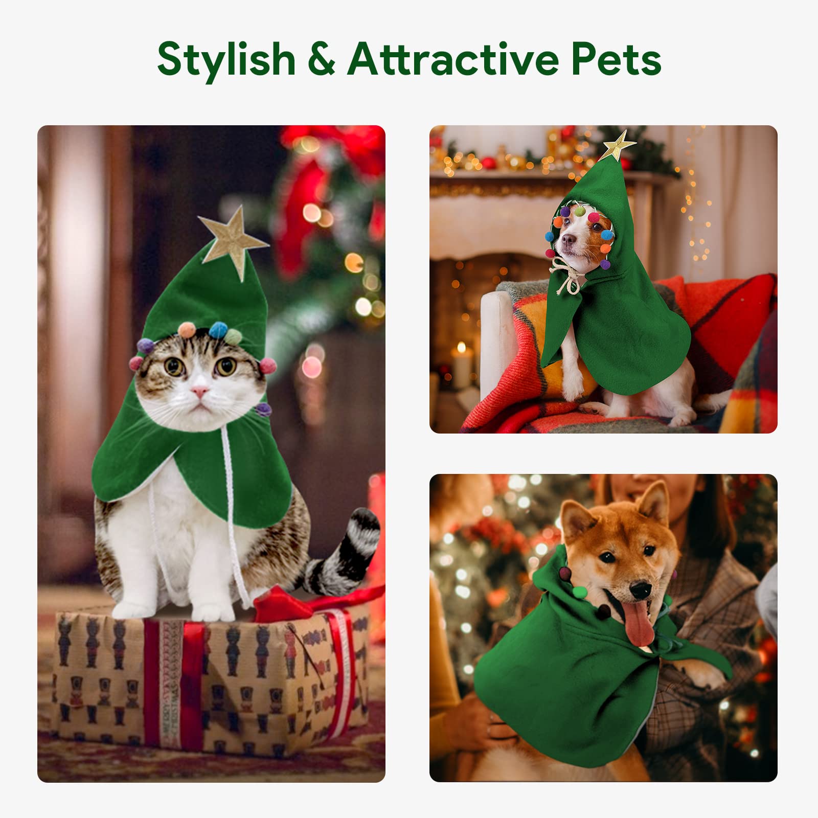 Meihejia Weihnachten Katze Kostüm Umhang Mit Stern Und Pompoms Hut Xmas Katze Santa Umhang Mit Weihnachtsmannmütze Party Cosplay Kleid Für Katzen Und Kleine Hunde