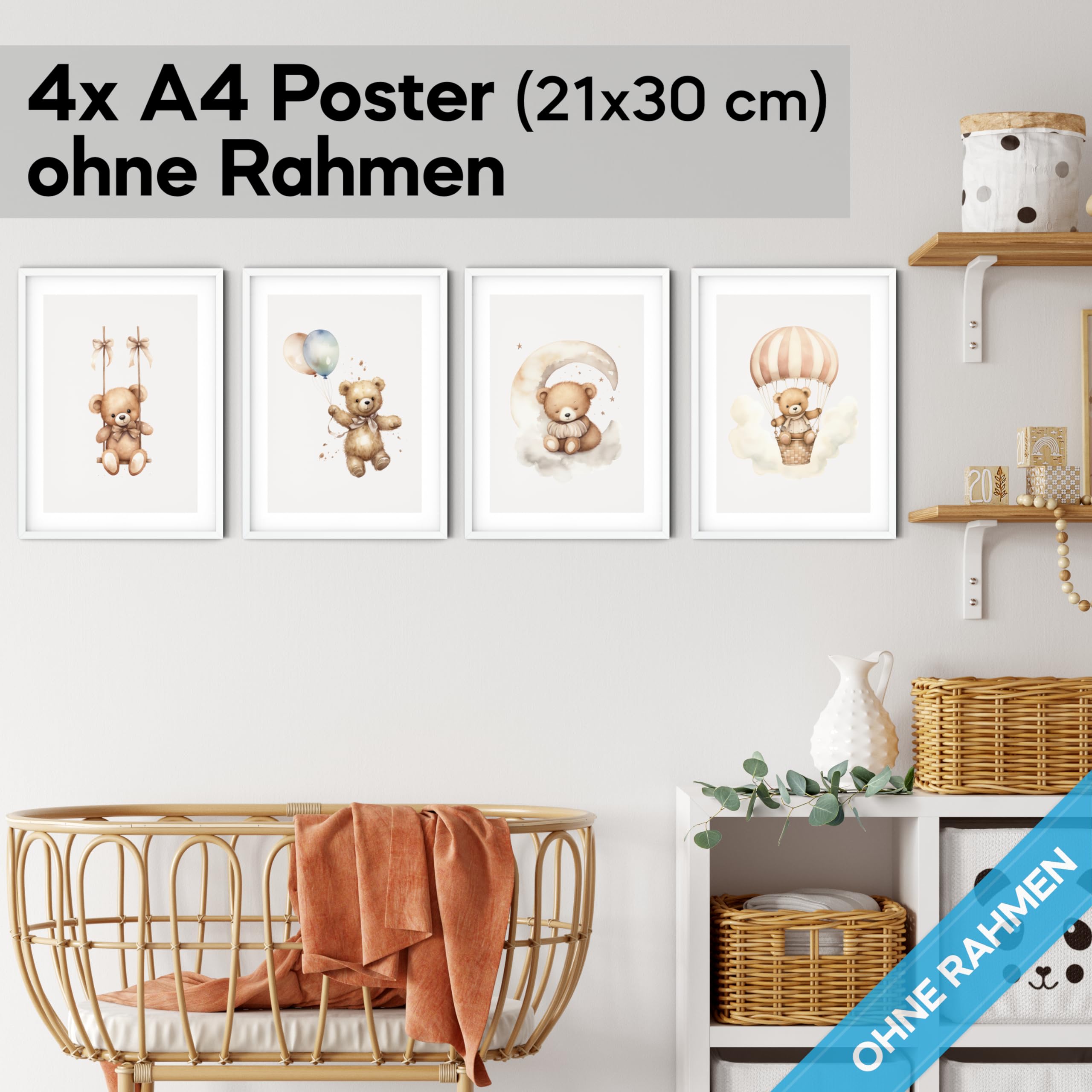 MeinBaby123® I Bilder Kinderzimmer | 3er Set DIN A4 | Wandbilder | Kinderzimmer Poster | Deko Bilder Kinderzimmer Mädchen Und Jungen | Babyzimmer Deko (Luftballon & Fuchs Beige