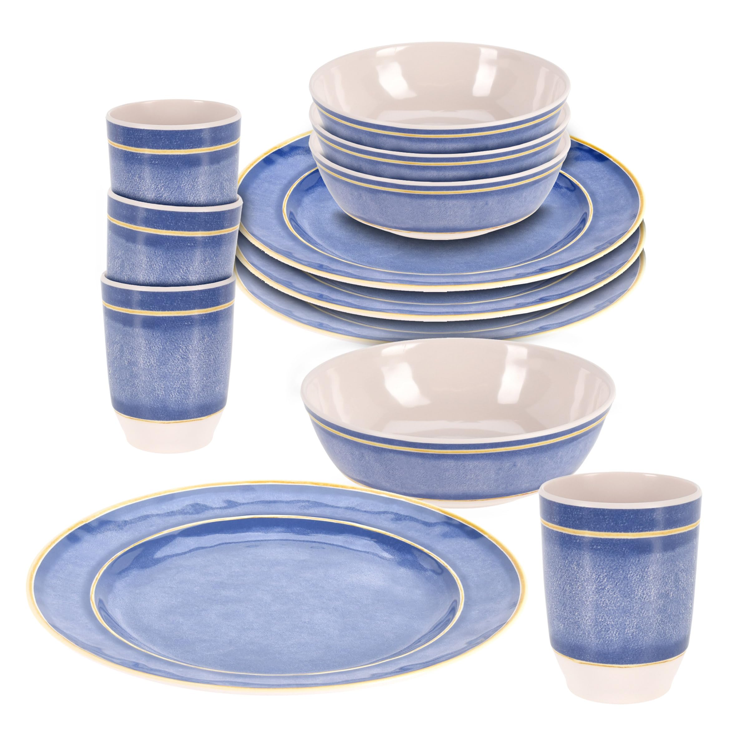 12-teiliges Melamin-Geschirrset für jeden Anlass Geschirr-Set für 4 Personen: Dieses Melamin-Geschirr-Set beinhaltet 10,2 x 27,9 cm große Speiseteller, 10,2 x 22,2 cm große Salatteller, 10,2 x 15,2 cm Müslischalen. 【Spezielles Design】 Dieses Geschirr-Set in frischem Grün hat Teller mit exquisiten Blumen-Designs. Set bestehend aus:4 Essteller (Durchmesser: 26,5 cm)4 Dessertteller (Durchmesser: 20 cm)4 Müslischalen (Durchmesser: 15 cm) Melamin Geschirr Set Halo Camping Essgeschirr Reise Picknick Teller Campinggeschirr 4 Personen Darüber hinaus eignet sich das leichte Geschirr-Set auch sehr gut für den Einsatz in der Heimküche, Familienfeiern, Camping, Picknicks und Freizeitfahrzeuge. Gebrauchs- und Pflegehinweise: Jedes Geschirr kann mit Schaum und Wasser gewaschen oder sicher in der Spülmaschine verwendet werden. Geschirrset eignet sich für lässige Beschäftigung im Innen- und Außenbereich. Leichtes Geschirr-Set: Für Kinder und ältere Menschen ist das leichte Geschirr handlicher zu verwenden, reduziert die Unannehmlichkeiten und Müdigkeit während der Mahlzeit. Für Sommerpartys oder das tägliche Frühstück hellt es Mahlzeiten auf. Unzerbrechliche Teller und Schüssel-Sets: Unsere Melamin-Schalen sind aus Melamin, das BPA-frei, blei- und cadmiumfrei ist und keinen unangenehmen eigenartigen Geruch hat, ein leichtes Geschirr-Set für langlebige Qualität, robust und splitterfest Es ist jedoch nicht für die Mikrowelle oder den Ofen für schnelle und einfache Mahlzeiten geeignet. Dieses Melamin-Geschirr-Set beinhaltet 10,2 x 27,9 cm große Speiseteller, 10,2 x 22,2 cm große Salatteller, 10,2 x 15,2 cm Müslischalen. Die zarten, geschichteten Texturen verleihen einen eleganten, schlichten Charme. DICKWANDIGES GESCHIRRSET: Tonoptik - grün4 große Teller Ø 28 cm4 kleine Teller Ø 23 cm4 Schüsseln Ø16 x 6 cm4 Becher je 400 ml - Ø 8,5 x H 11,5 cm Ø 8,5 x H 10,5 cm Produktgewicht ohne Verpackung: ca. Dieses praktische 12er Set ist der ideale Wegbegleiter für Ihren Campingurlaub, die Festivalsaison, den Wanderausflug oder bei einem schönen Picknick mit der Familie