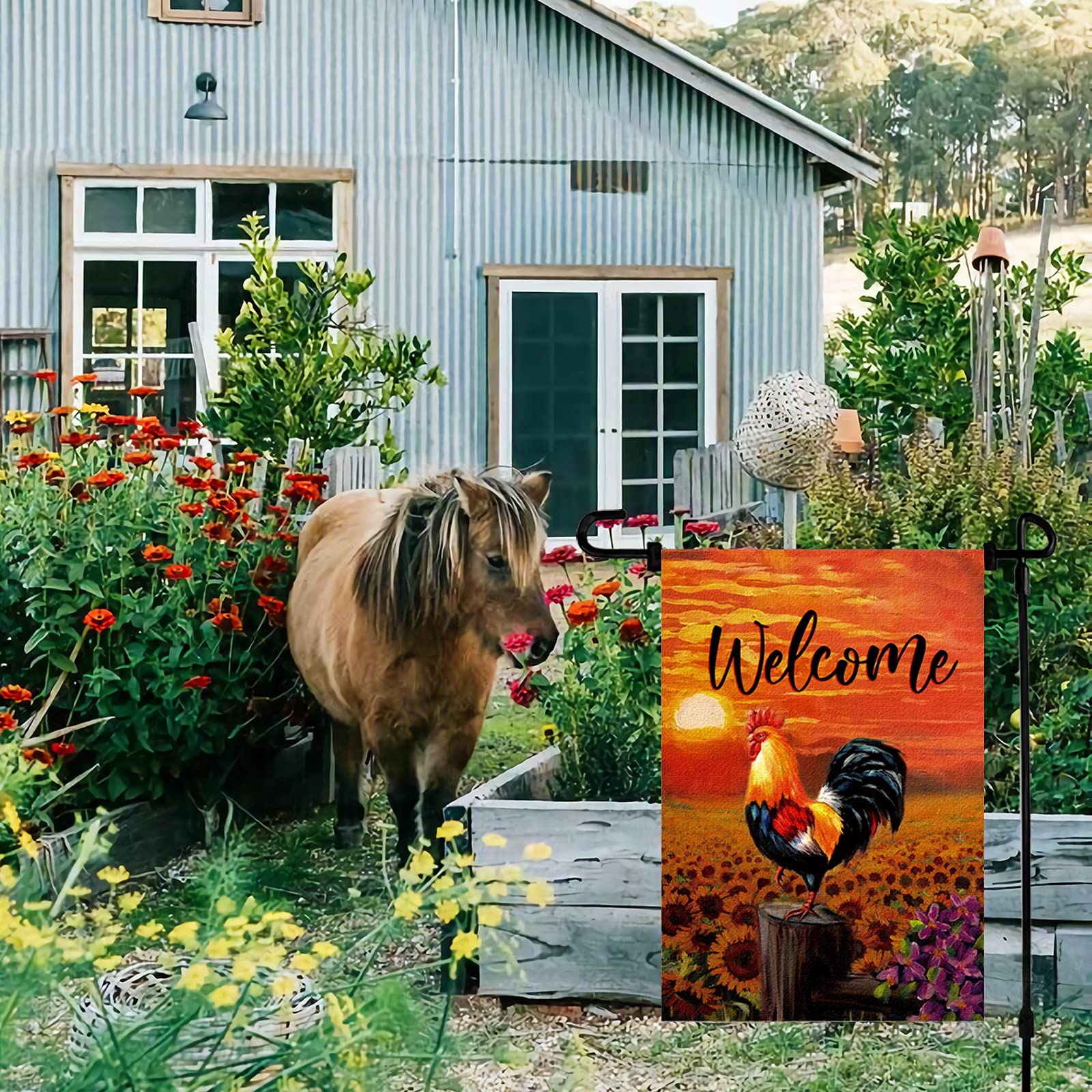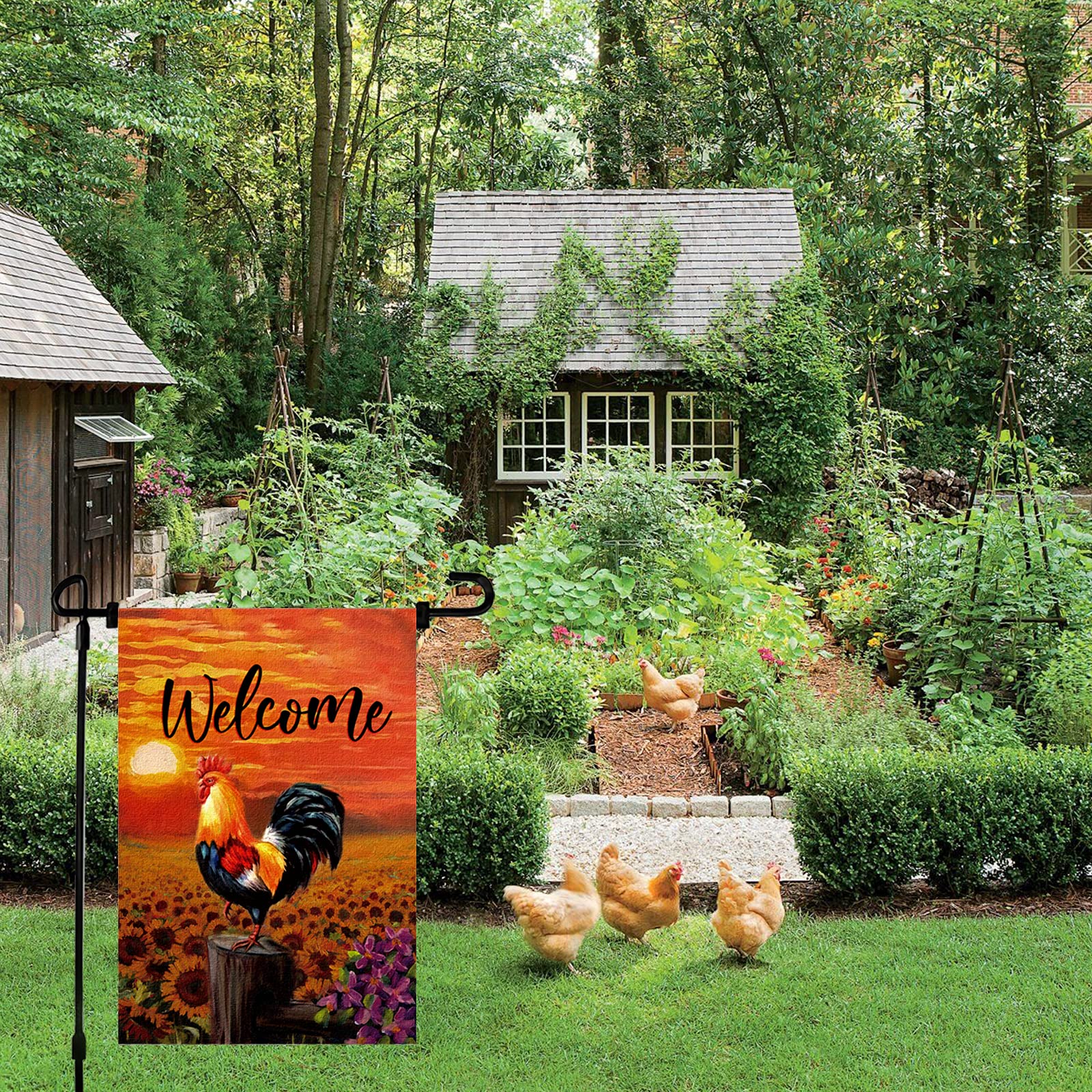 Meltelot Welcome To Our Farmhouse Garden Flag One Chicken With Some