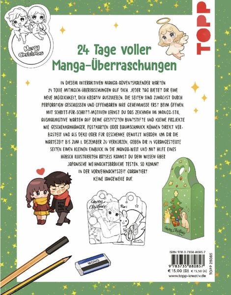 Merry Manga-Christmas. Das Adventskalender-Buch: 24 Tage Manga Zeichnen Mit Dem Mitmach-Adventskalender. 24 Verschlossene Seiten Zum Auftrennen, Starte Direkt Im Buch! : Chiana