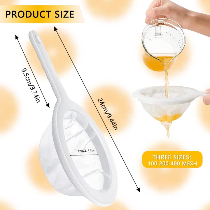 2 Stück Sieb Filter,Mesh Sieb Nylon Sieb Filter Mesh, Nylon Sieb Mit Griff, 200/400 Mesh Ultrafeines Trichterfilter, Mit Rand Und Bequemen