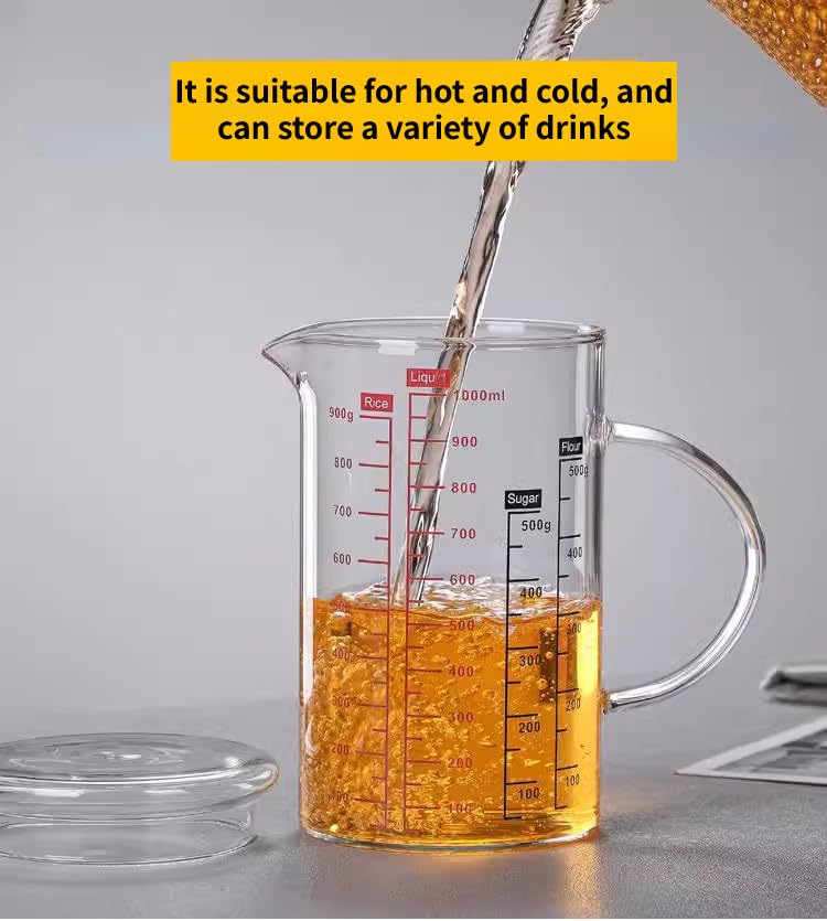 Messbecher Glas,Becherglas 1000ml, V-Förmige Düse, Klare Skala