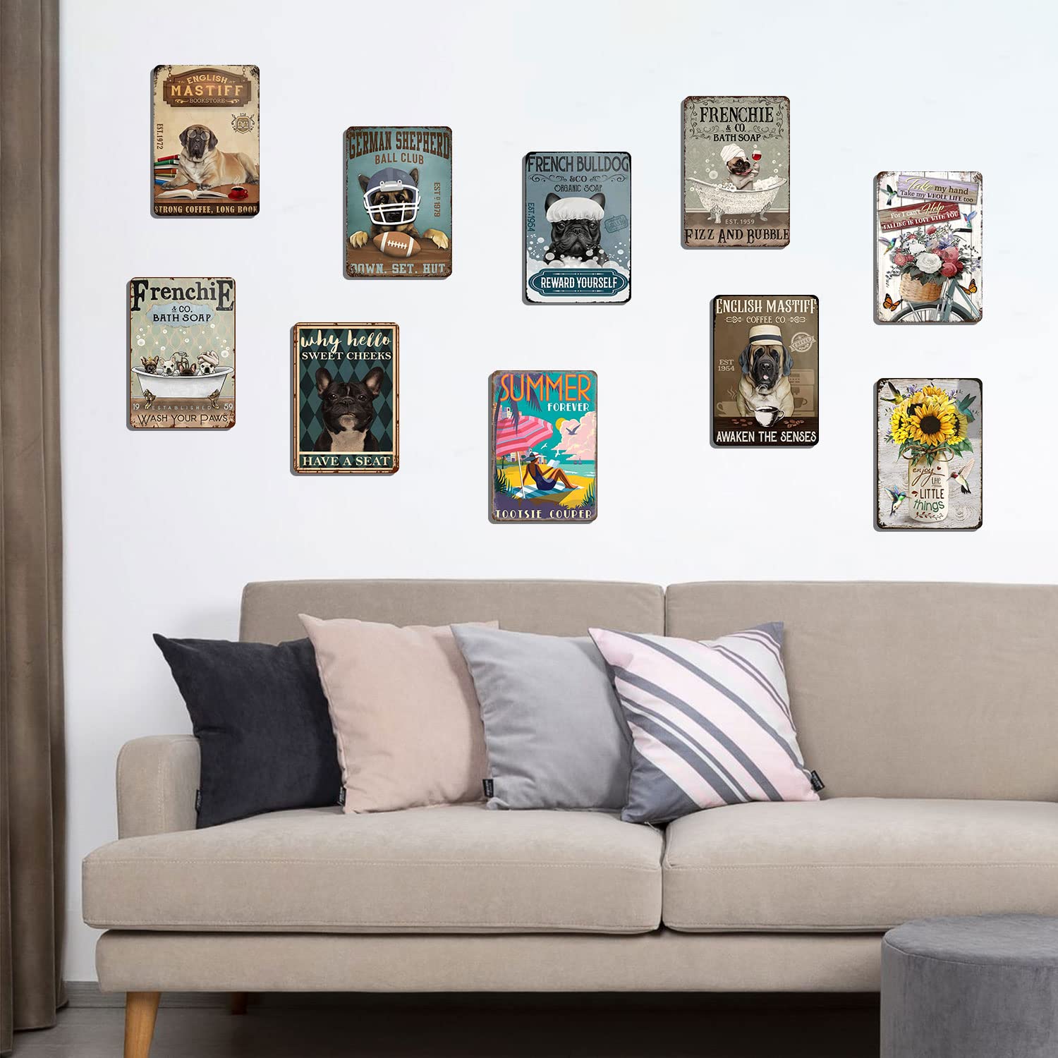 Retro-Metall-Blechschild, Wanddekoration, Schöne Blumenmalerei, Blaue