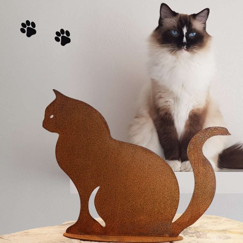 Rostikal Garten Deko Katze 25x32 Cm – Handgefertigte Langlebige Metallfigur Vintage Rost - Ideal Für Eingangsbereich & Garten Geschenk Für Katzenliebhaber