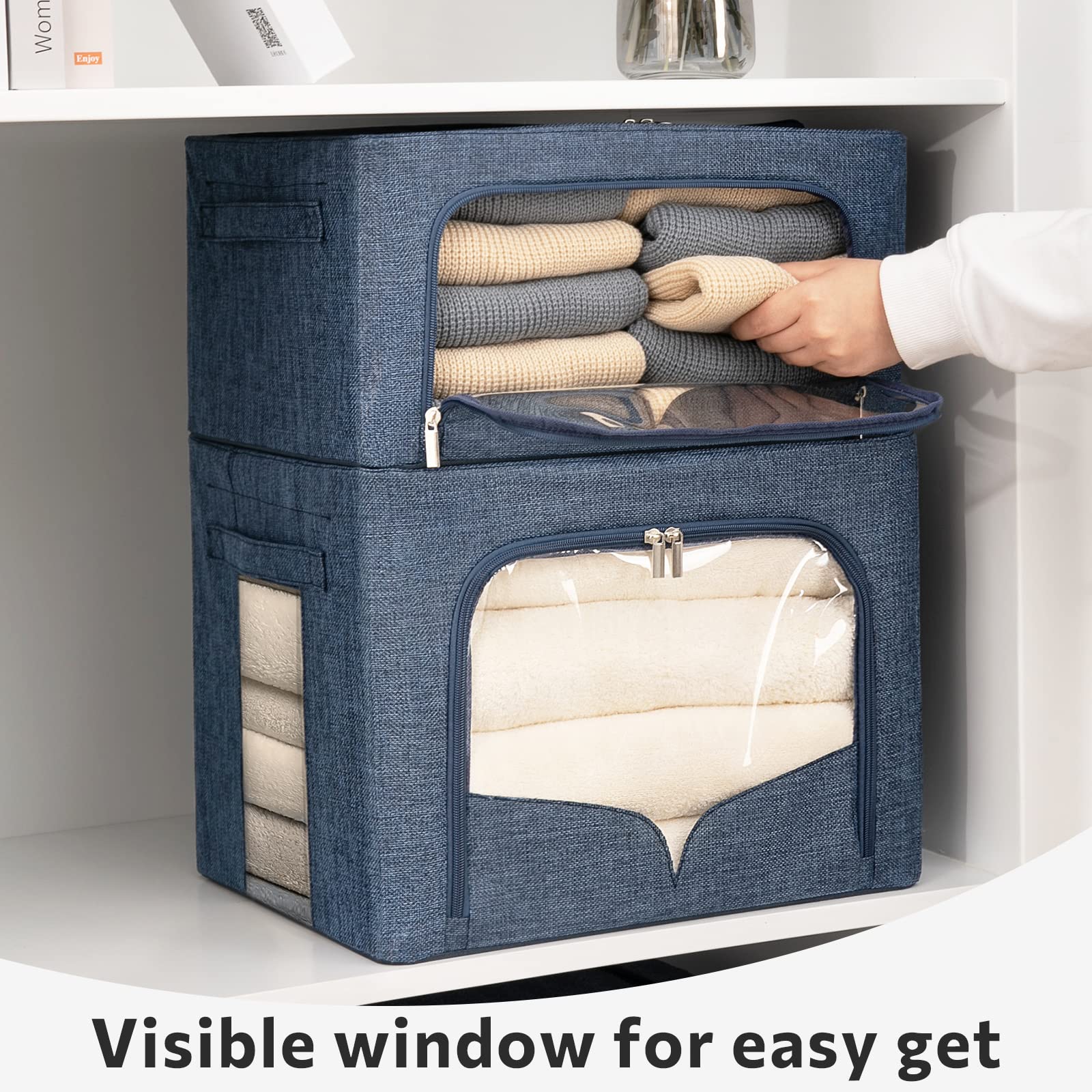 Große Kleideraufbewahrungskörbe Mit Metallrahmen, Faltbare Kleidung Organisiert Und Aufbewahrt, Leinen-Aufbewahrungsbox Mit Transparentem Fenster
