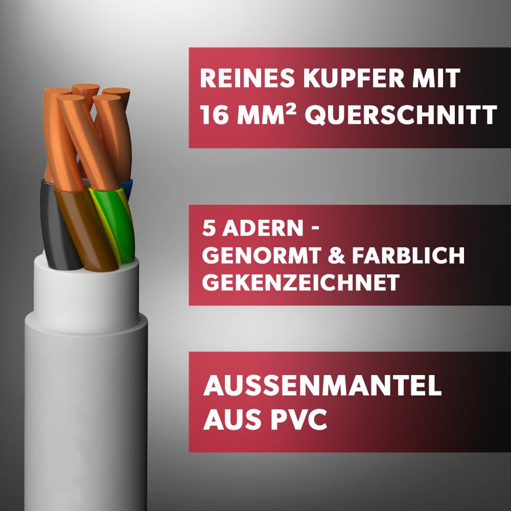 Zuverlässigkeit für jede Anwendung Unser Service: Verlässlich, lokal EBROM NYM-J 5x16 mm² - Mantelleitung - Installationskabel - Feuchtraumkabel - Hausanschluss - grau - Auswahl in 1 Meter Schritten, auf den Meter genau - Ihre Auswahl: NYM-J 5x16 mm2, Länge Kupfer oder Aluminium? Kupfer: Höhere Leitfähigkeit 5 Adriges Kabel Meterware Auf Den Meter Genau: NYM-J 5x16 Mm² - NYM-J 5x16 Mm2 5x16mm2 Erdkabel VDE 0281, Teil 204, CE - flammwidrig nach VDE 0482-332-1-2/IEC 60332-1-2 - Brandverhaltensklasse nach EN 13501-6 Eca Kabelschuhe: DIN-Vergleich DIN46234: Quetschkabelschuh - Allgemein, lockere Passform Häufig gestellte Fragen Durchmesser vs. In trockenen, feuchten und nassen Räumen sowie im Mauerwerk und im Beton, ausgenommen für direkte Einbettung in Schüttel-, Rüttel- oder Stampfbeton. 1 HAUSINSTALLATION 2 NEBEN-/AUSSENBEREICH 3 GEBÄUDETECHNIK 4 GEWERBLICHE ANWENDUNG 1 NYM-J Leitung 2 NYM(ST)-J 3 YSLY-JB Verlegekabel Wärmemanagement: Kupfer effizienter Sicherheit durch richtige Auswahl YSLY-JB Verlegekabel Universell einsetzbar überall dort, wo höchste Flexibilität bei der Verlegung gefragt ist. Wofür steht EBROM? Hohe Qualitätsstandards in Bayern, Nachhaltigkeit: Weniger Abfall, Umweltschutz durch Ressourceneinsatz Aluminium: Geringere Leistung, günstiger FLRY Fahrzeugleitungen Feindrähtig und flexibel – ideal für anspruchsvolle Installationen Große Mengenauswahl, bestellbar ab 1 Meter bis 100 Meter am Stück! NYM-J Leitung Perfekt für feste Verlegungen in trockenen und feuchten Räumen. NYM-J 5x16 Mantelleitung PVC grau, Ring 50 m Auch für die Verwendung im Freien geeigent, sofern vor direkter Sonneneinstrahlung geschützt, jedoch nicht im Erdbereich zugelassen., TYP: NYM-J gem. Querschnitt Unterschied: Durchmesser (mm) vs., Querschnitt (mm²) Die Speditionslieferung ist für Sie kostenlos. Sofort lieferbar Schneller Versand Mantelleitung NYM-J 5x16 mm² Meterware jetzt online bei bestellen Für Sie ausgewählt und konfektioniert durch die Kabelprofis von EBROM: ACHTUNG!