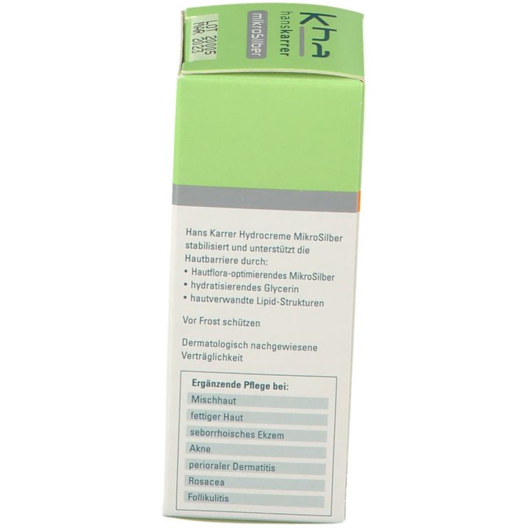 Hans Karrer Hydrocreme MikroSilber 30 ml (PZN 06735458) günstig online kaufen bei - Schnelle Lieferung Gratis-Versand für PlusMitglieder Hans Karrer Mikrosilber , 30 Ml, PZN 6735458 - Adler-Apotheke In 53567 Asbach Hans Karrer Hydrocreme Mikrosilber Produktbeschreibungen HANS KARRER Hydrocreme MikroSilber 30 ml HANS Hans Karrer GmbH Gebrauchsanweisung Verwenden Sie die Hydrocreme MikroSilber mehrfach täglich. Tragen Sie die Creme dabei in einer dünnen Schicht auf. Versandkostenfrei ab 10€ immer günstige Preise. Hautpflege bei fettiger, zu Akne neigender Haut, basierend auf hautähnlichen Lipiden (DMB), kombiniert mit den positiven Eigenschaften von MikroSilber Die Hans Karrer MikroSilber Produkte können bei Kindern ab 1 Jahr angewendet werden. Feuchtigkeitsspendende Hydrocreme für Aknehaut